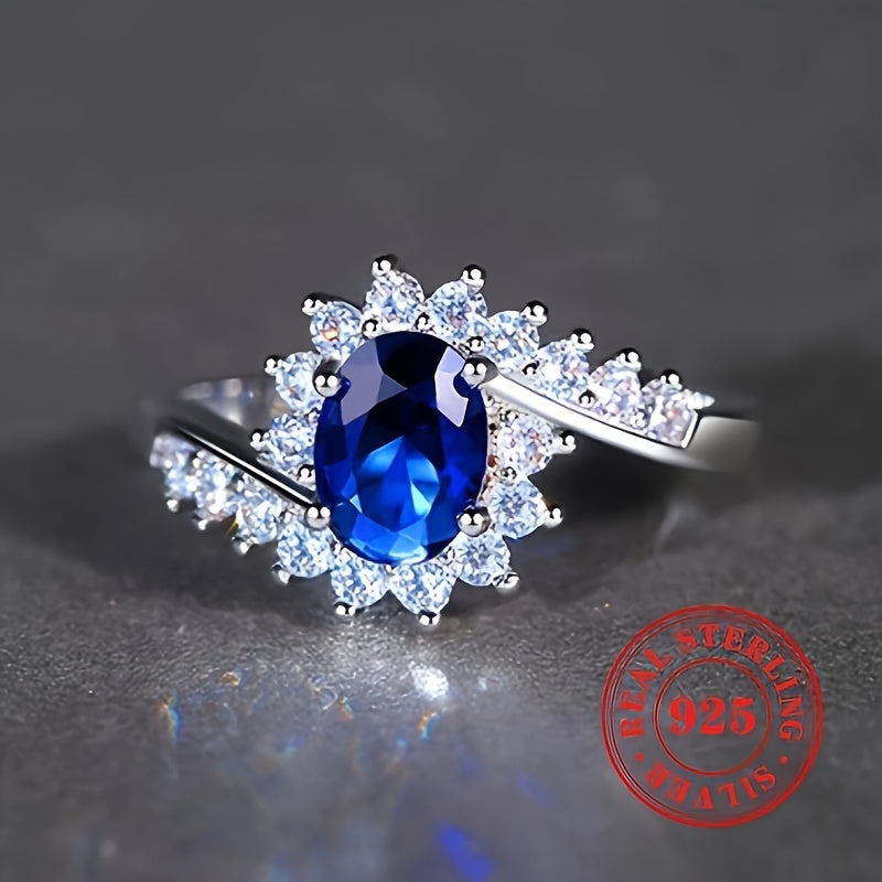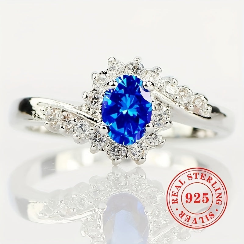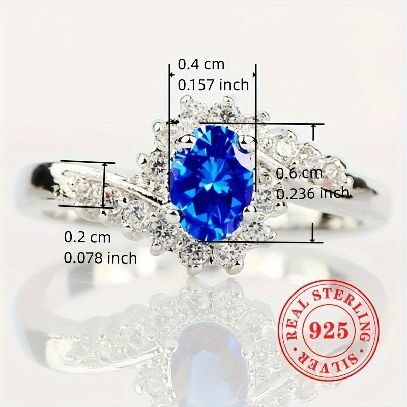 Anniversary Ring S925 Sterling Silver Oval Gemstone Wedding Jewelry