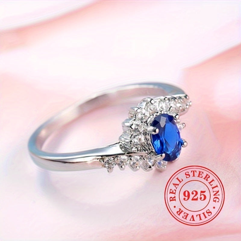 Elegant anniversary ring featuring a synthetic gemstone in a stylish oval setting. Made of durable S925 sterling silver, perfect for weddings and parties.