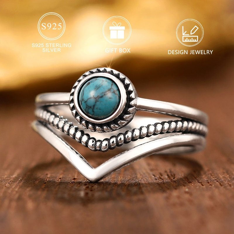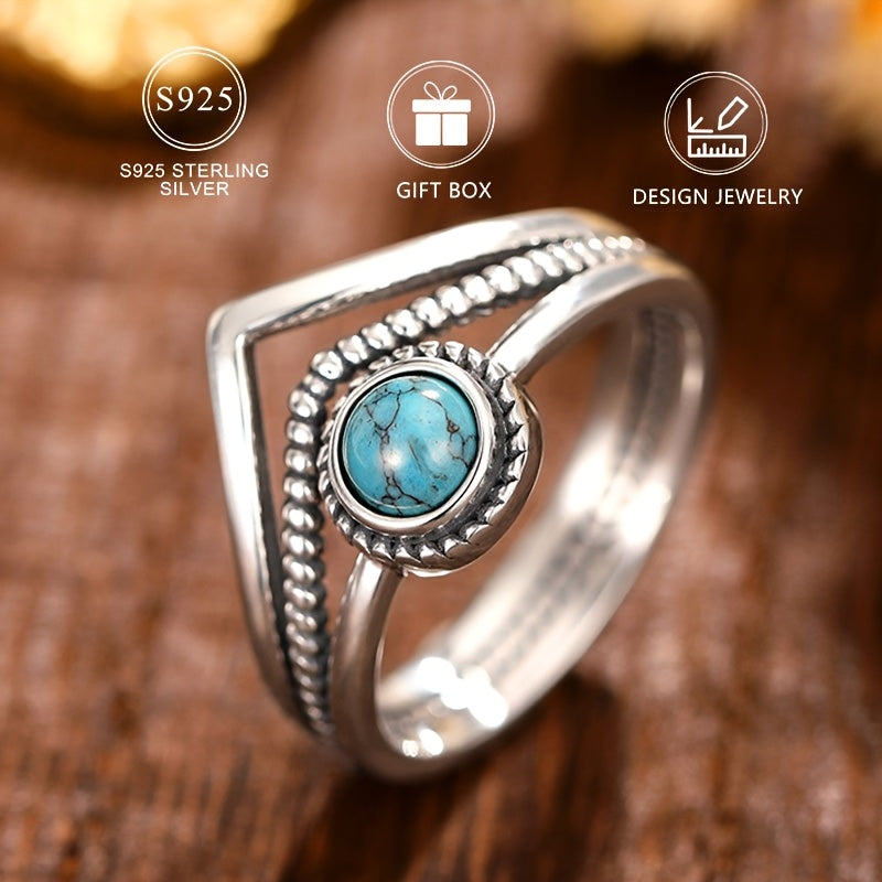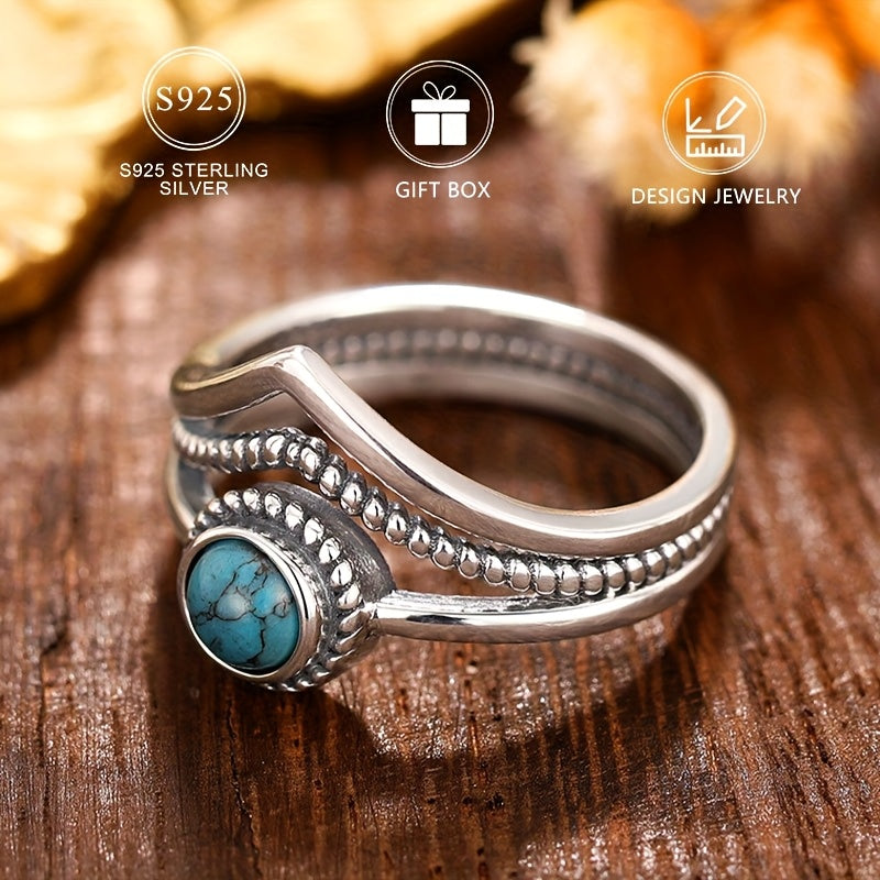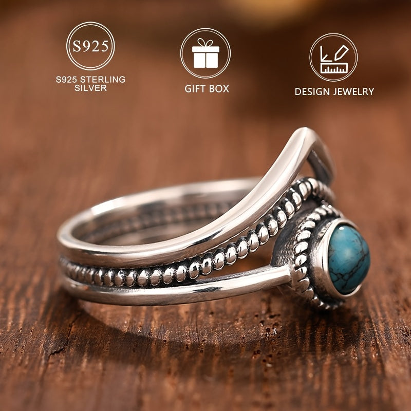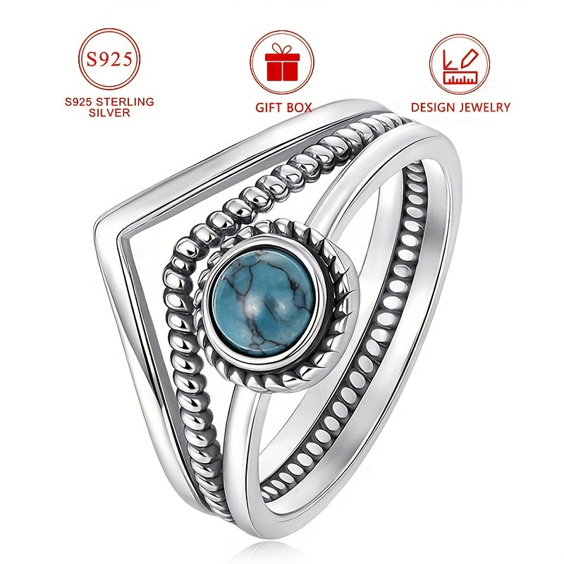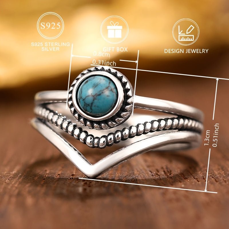 Add a touch of vintage bohemian charm to your look with this 925 sterling silver ring featuring a synthetic turquoise stone. Perfect for daily wear or special occasions.