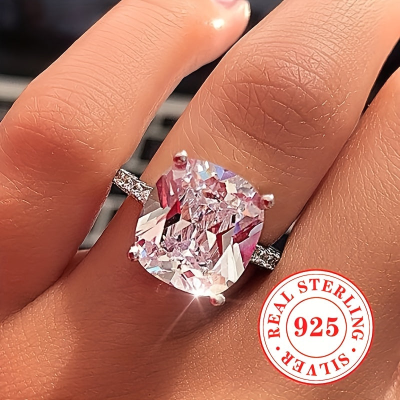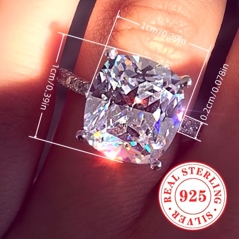 Elegant women's engagement ring featuring a square round cubic zirconia stone set in a 4-prong design. Made of S925 sterling silver. Perfect as a wedding band or gift. Note: Does not come in a box.