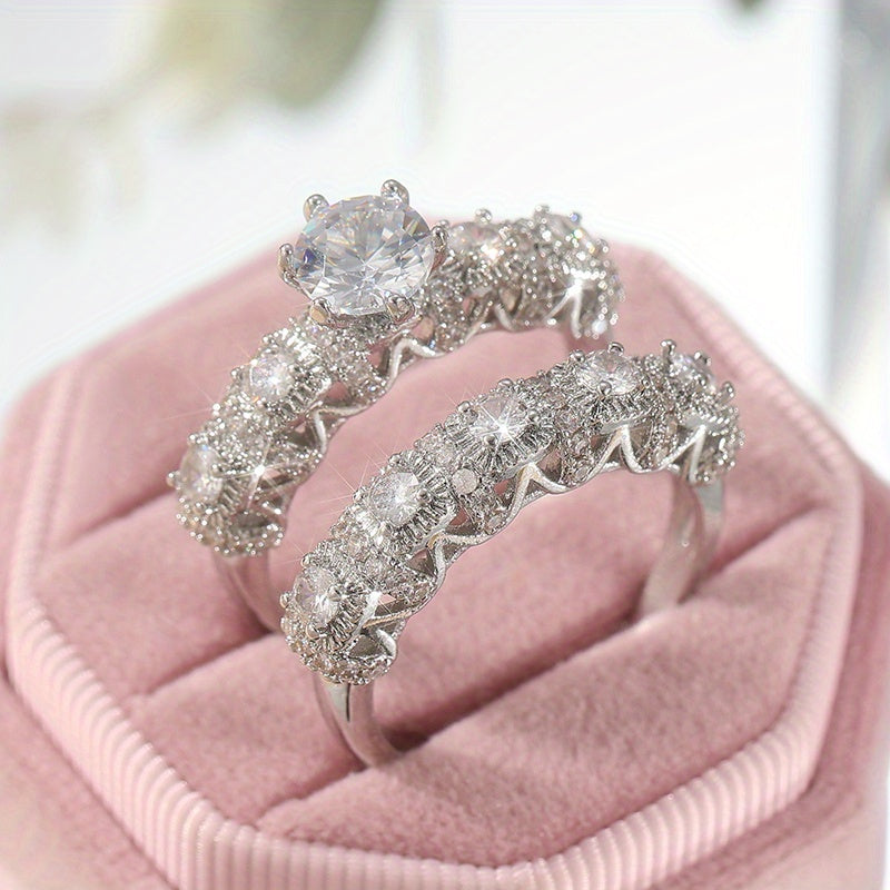 This set includes 2 stackable copper rings with synthetic cubic zirconia, perfect for daily wear or as a gift for special occasions like Christmas or weddings.