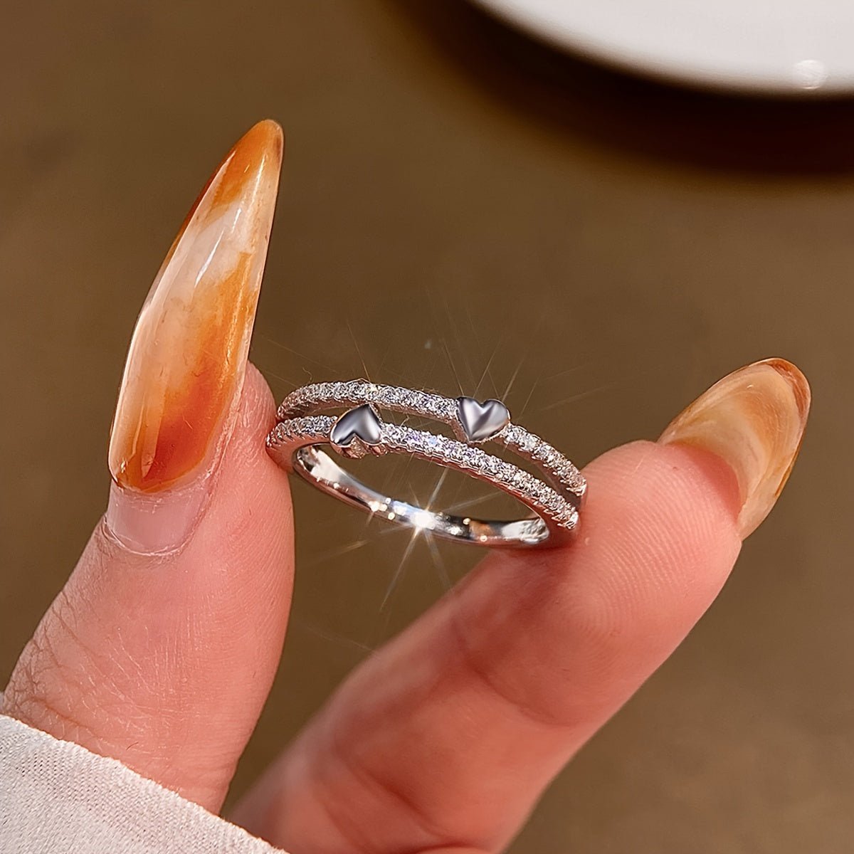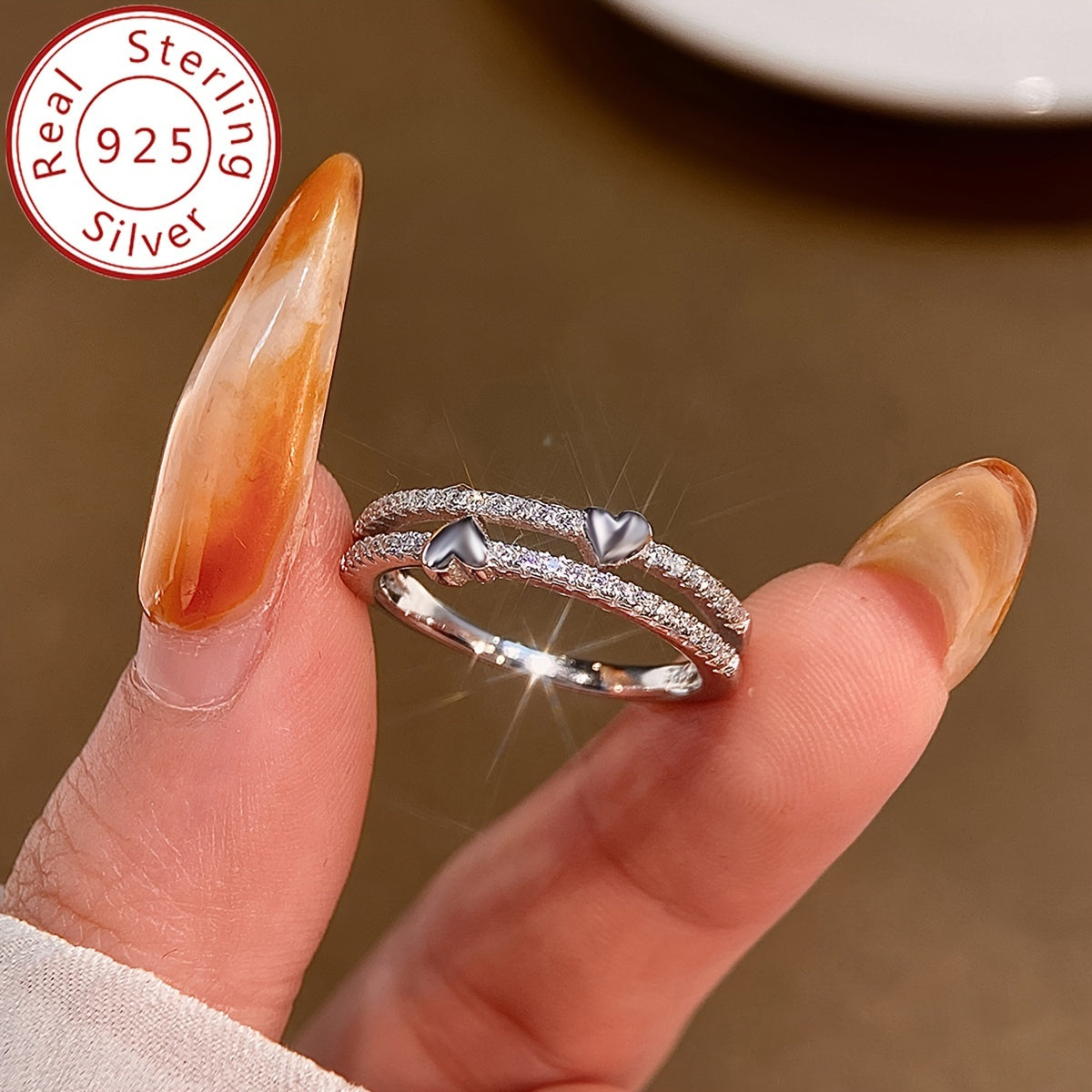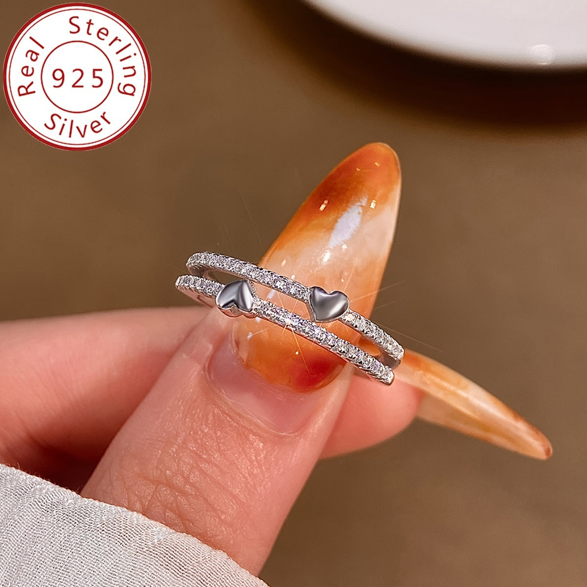 This elegant double heart ring features sparkling zirconia stones set in high-quality 925 sterling silver. Perfect for daily wear or as a thoughtful gift for someone special.