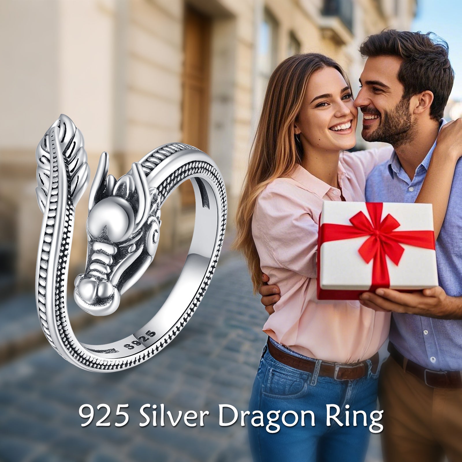 This dragon ring is made from 925 sterling silver, it is adjustable and features a lucky design. Perfect as a gift for men who appreciate unique jewelry.