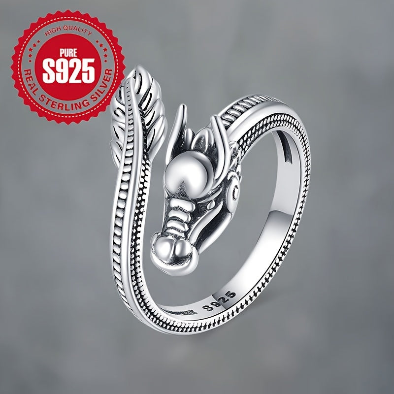 Dragon Ring 925 Sterling Silver Adjustable Open End Ring Men