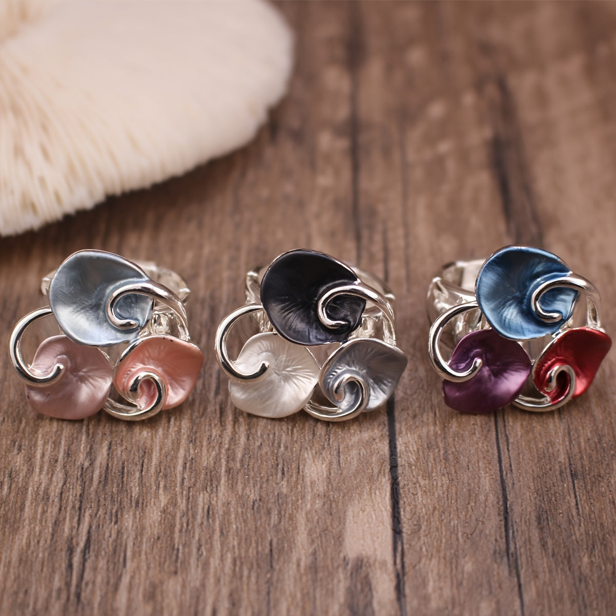 This high-end ring features colorful flowers, making it a versatile accessory for autumn and winter. The elastic design ensures a comfortable fit.