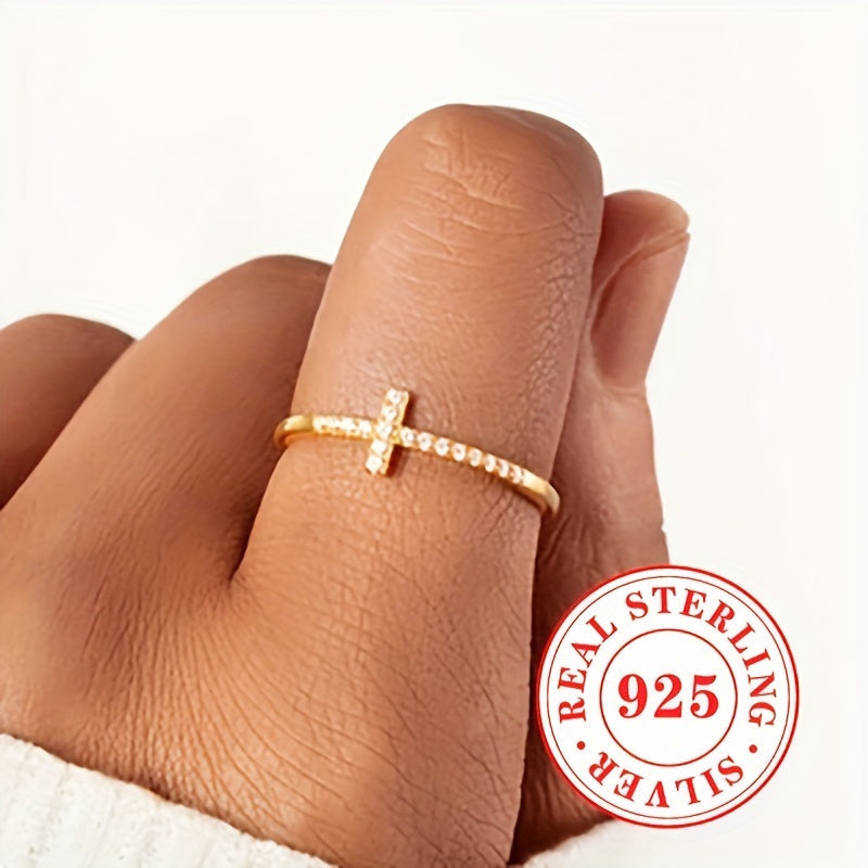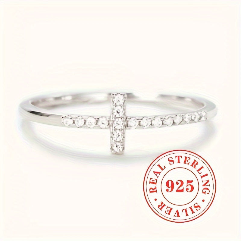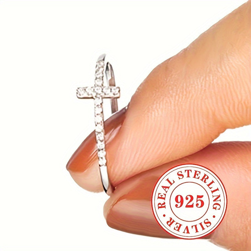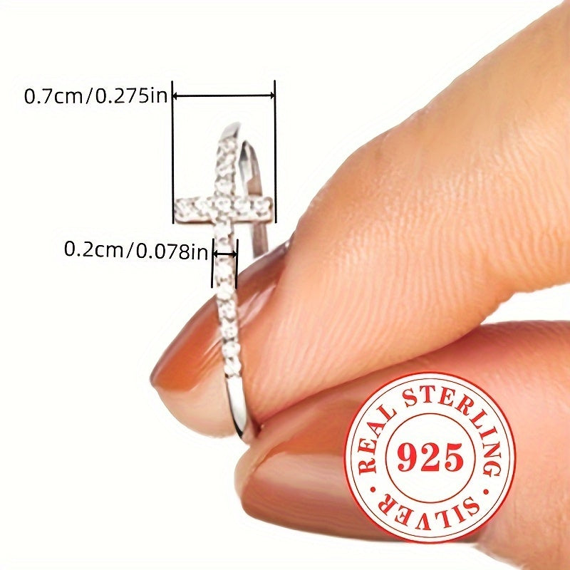 Add a touch of elegance to your Easter outfit with this stylish ring featuring a synthetic zirconia cross pendant, crafted from S925 sterling silver.