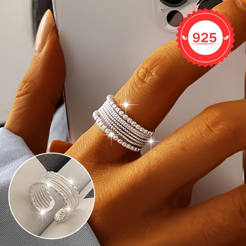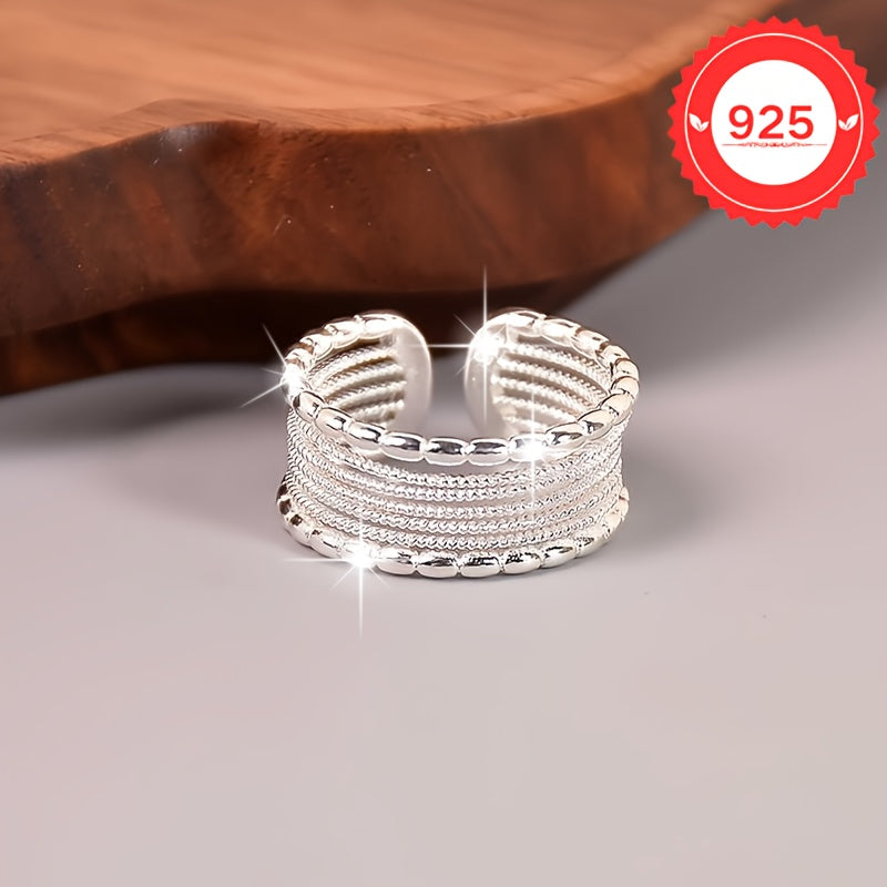Elevate your style with this stunning open ring featuring a geometric design. Crafted from 925 silver, this adjustable ring is perfect for summer occasions.