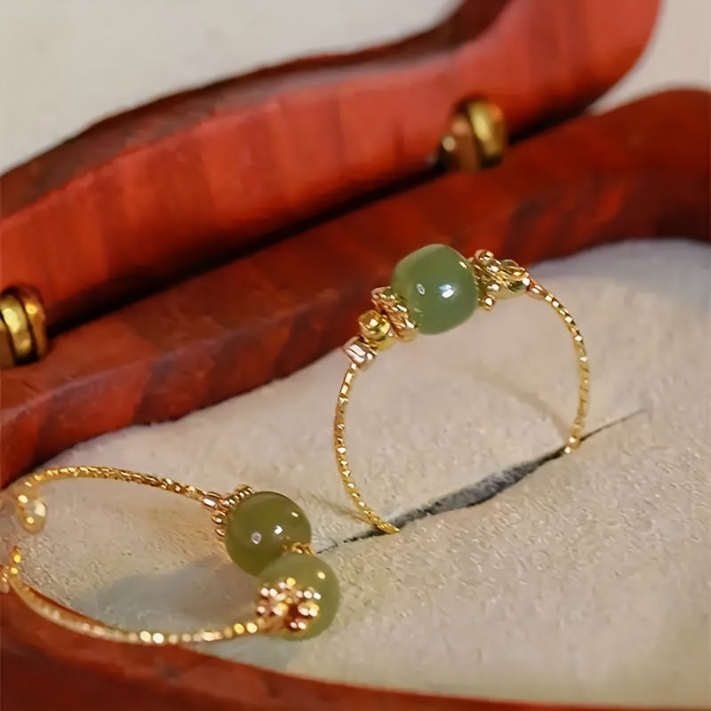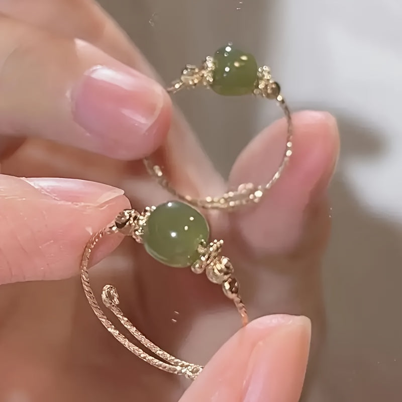 Elevate your look with this green stone ring featuring a minimalist design and a golden toned band. Perfect for wearing daily and suitable for all seasons.