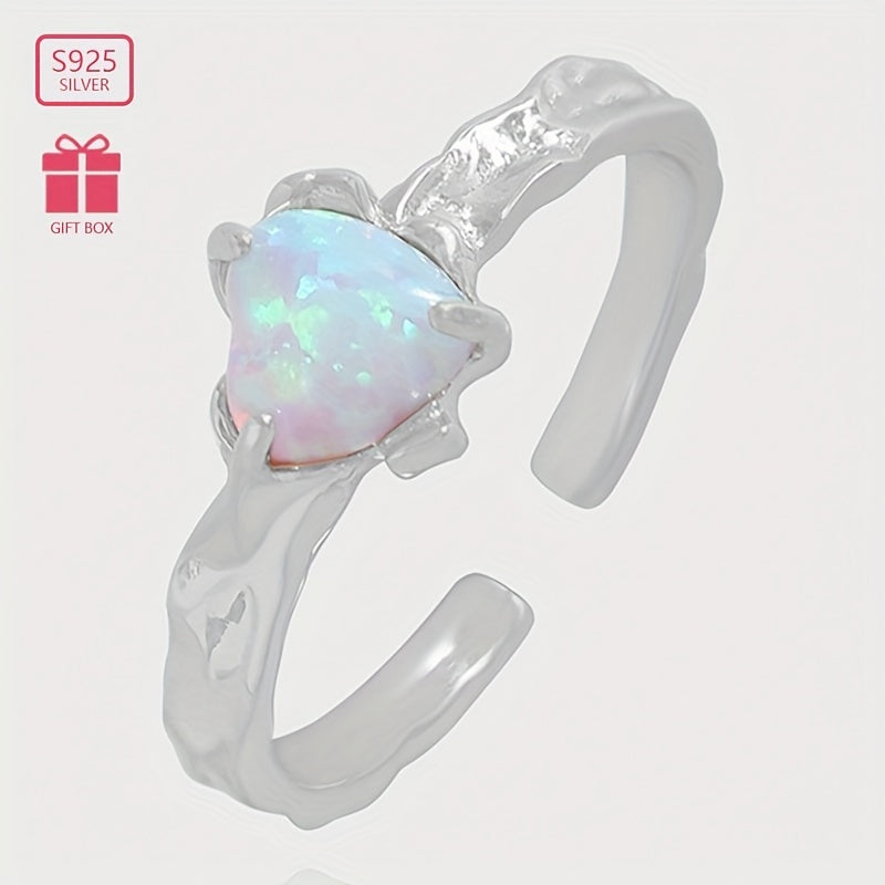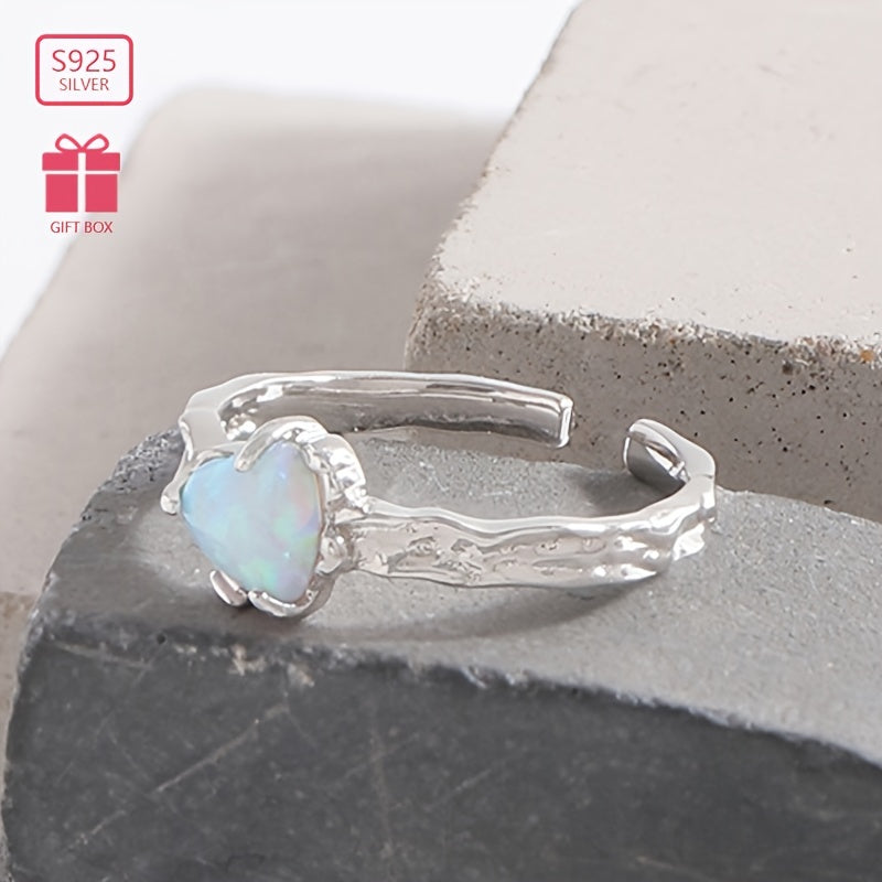 Add a touch of elegance with this heart-shaped opal stone ring. Made of 925 silver, the band is adjustable for a perfect fit. The textured design adds a unique charm, making it suitable for daily wear.