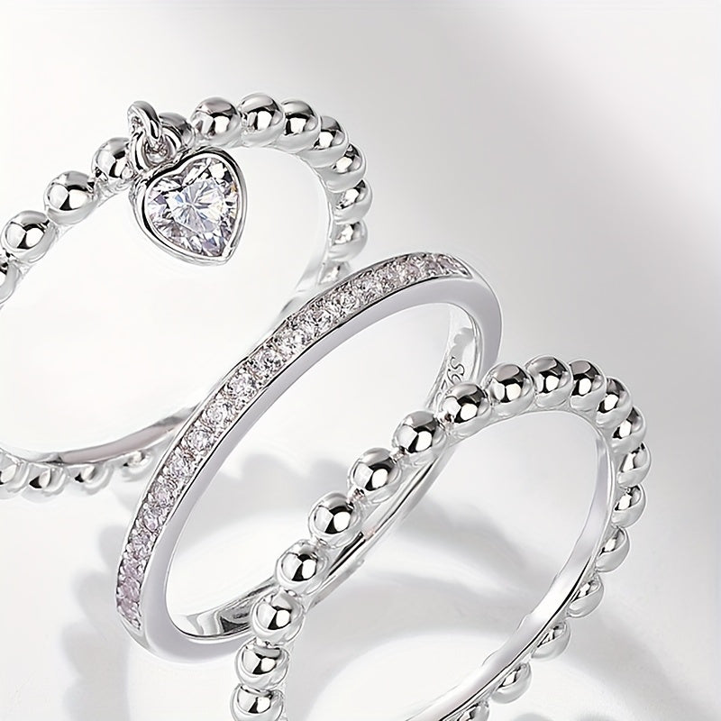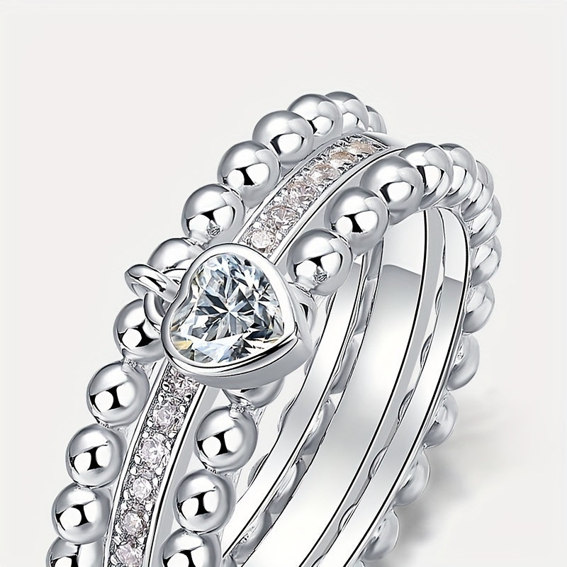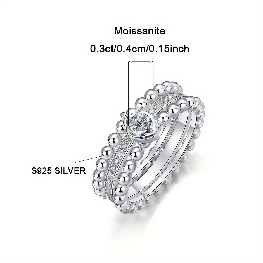 This stunning ring features a heart-shaped 0.3ct D Moissanite stone set in S925 sterling silver with platinum plating. Perfect for daily wear, vacations, weddings, and banquets.