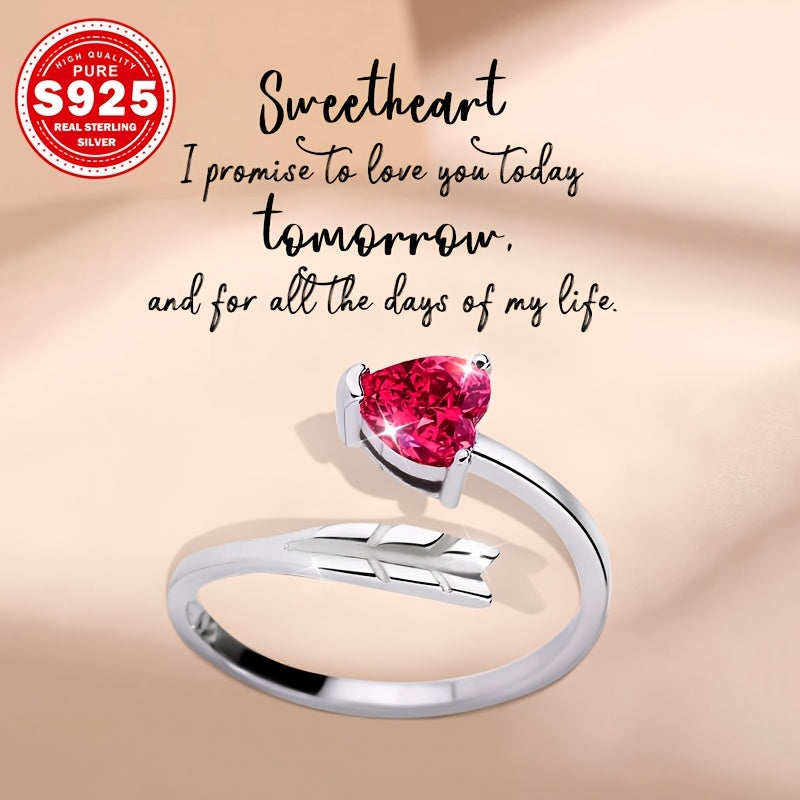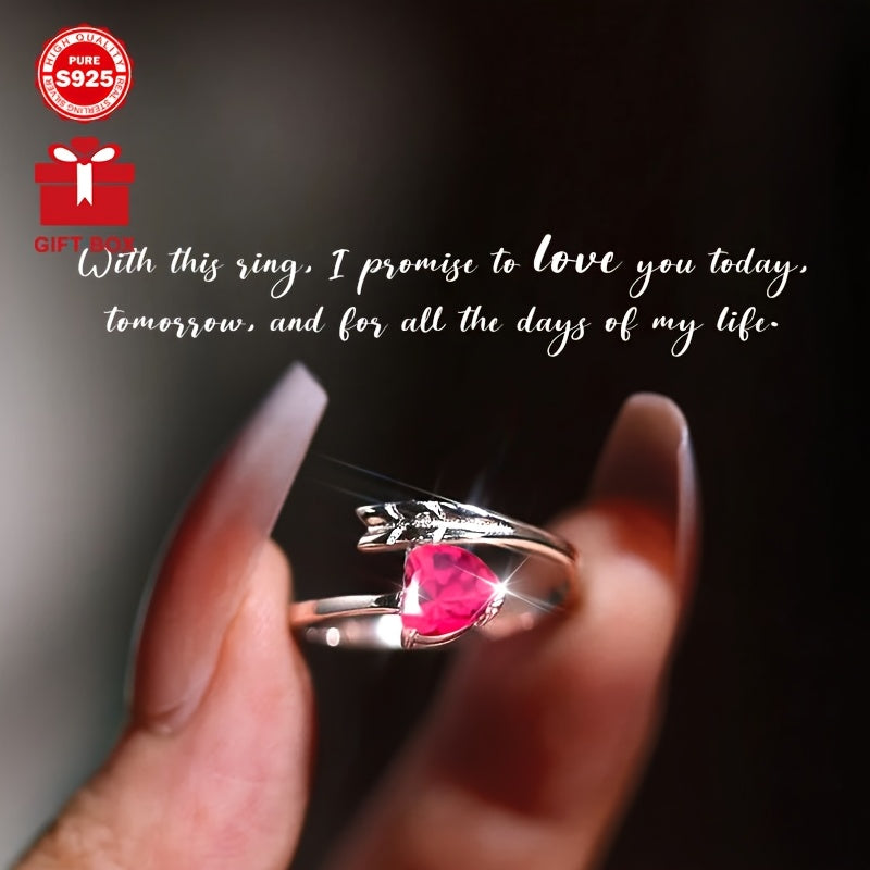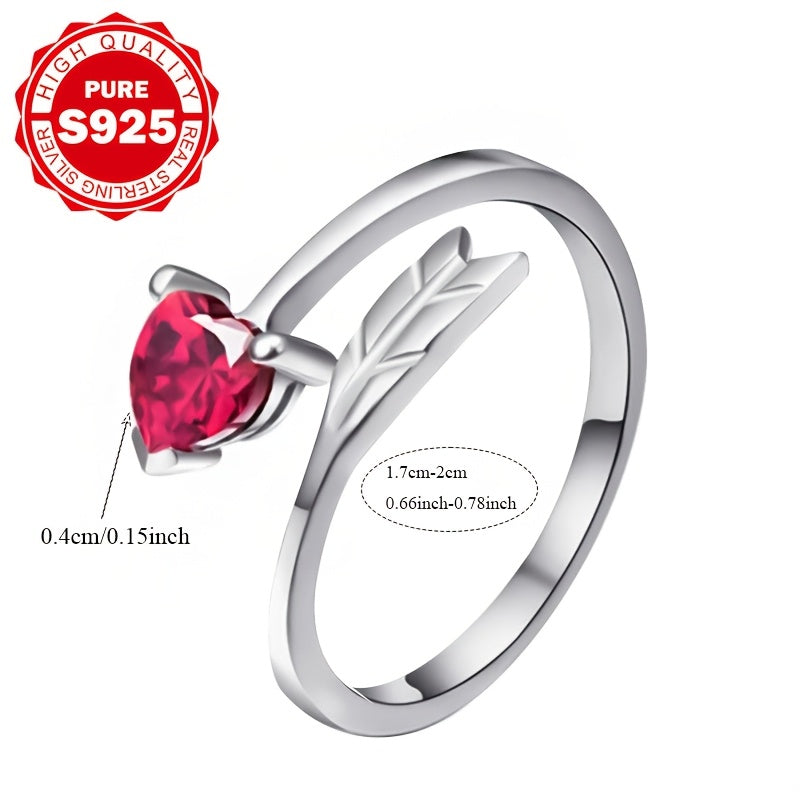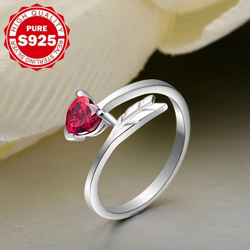Express your love and commitment with this unique red zirconia ring featuring Cupid's arrow on sterling silver.