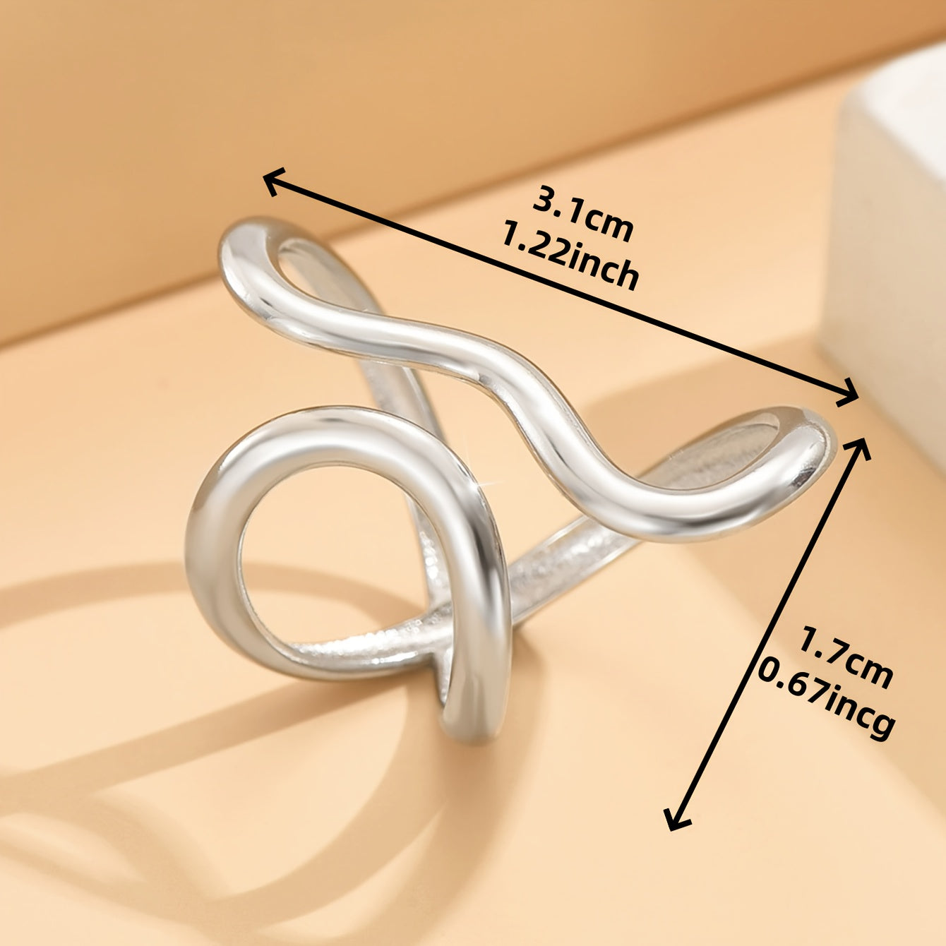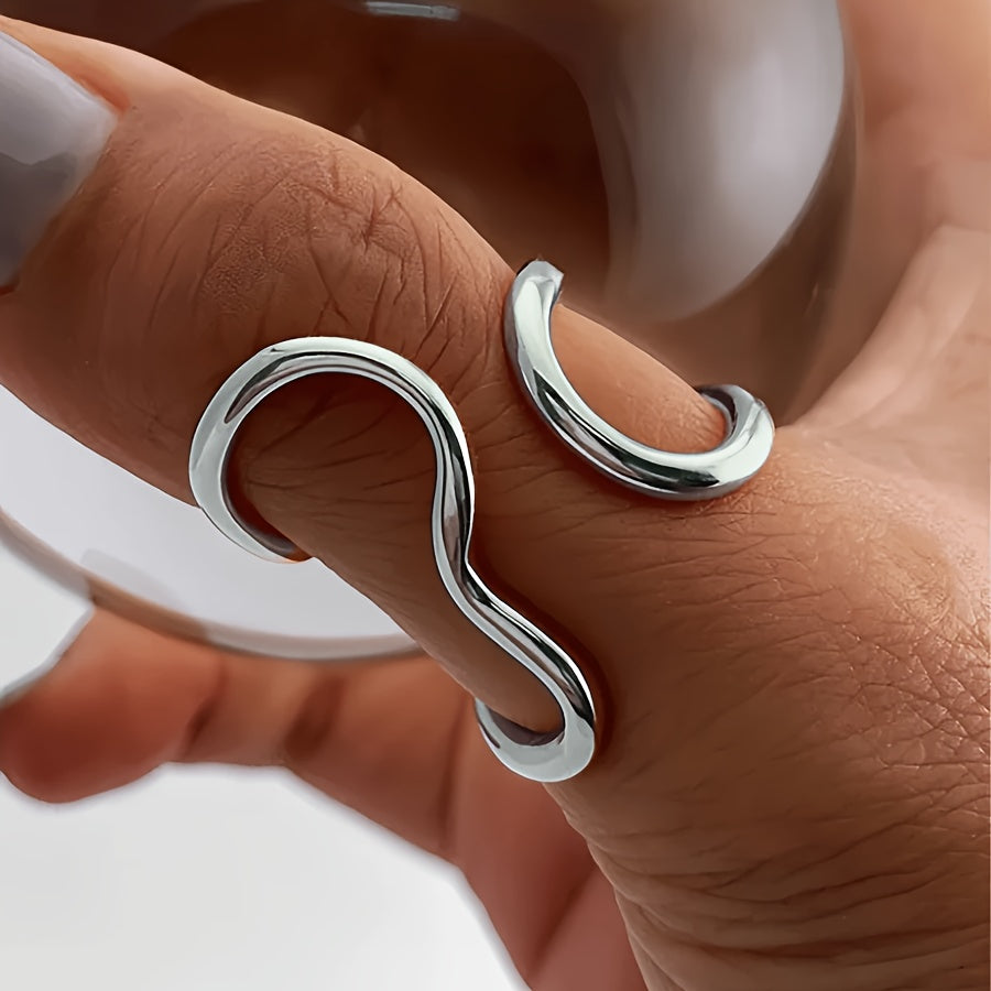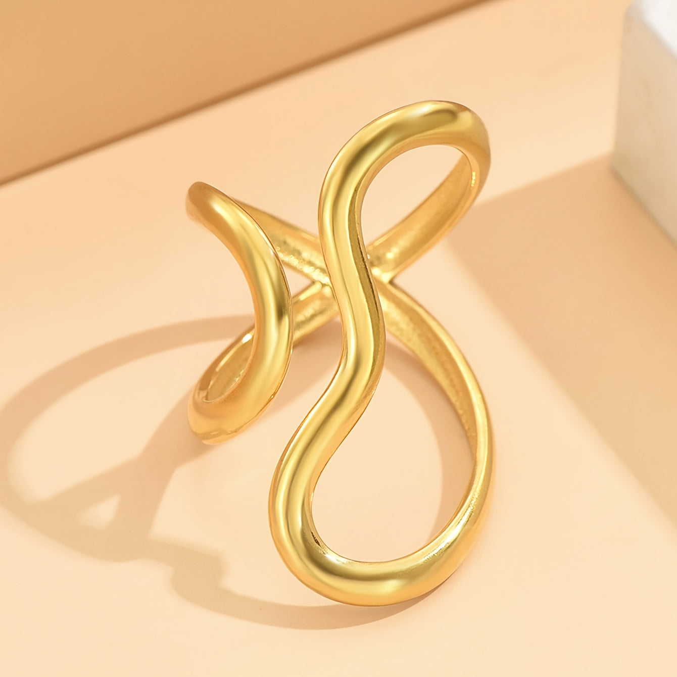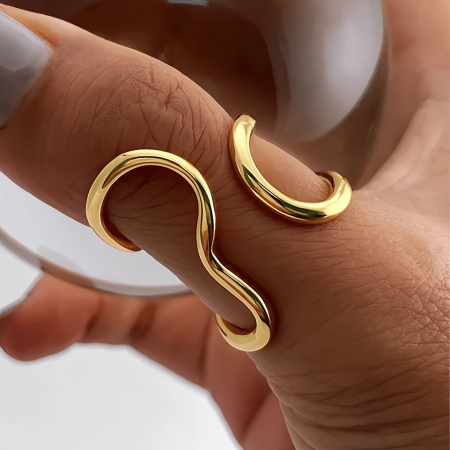 This unique stainless steel open ring features an irregular line design with a polished golden finish. It is versatile for daily wear, vacation, and makes a great gift for women's jewelry collections.