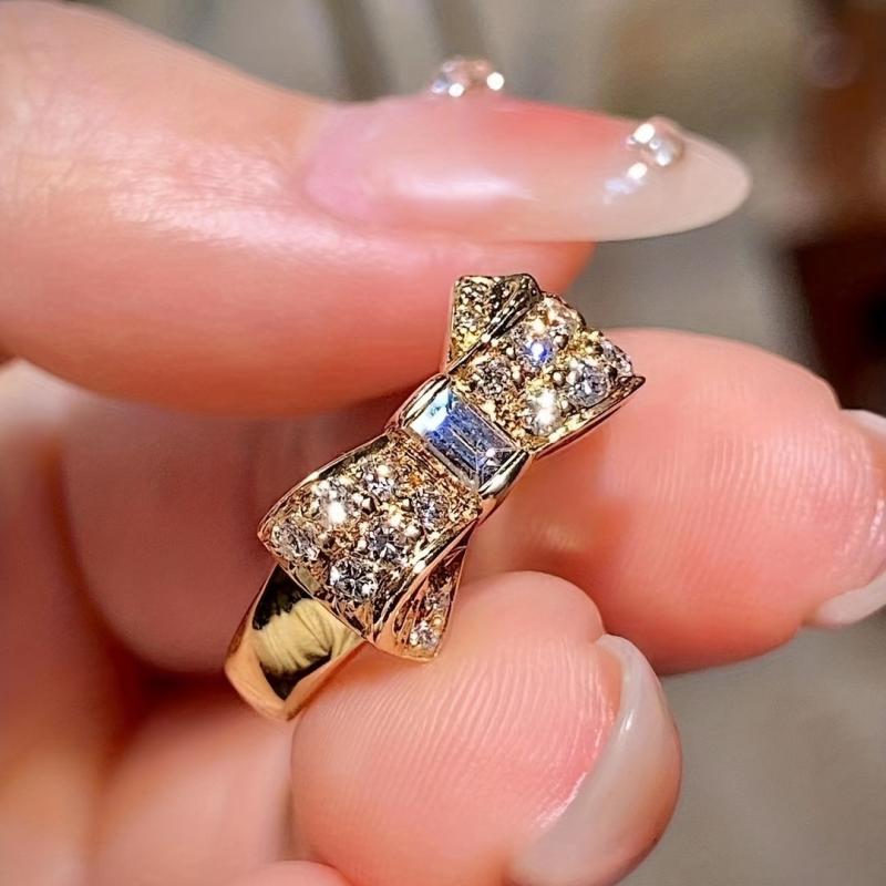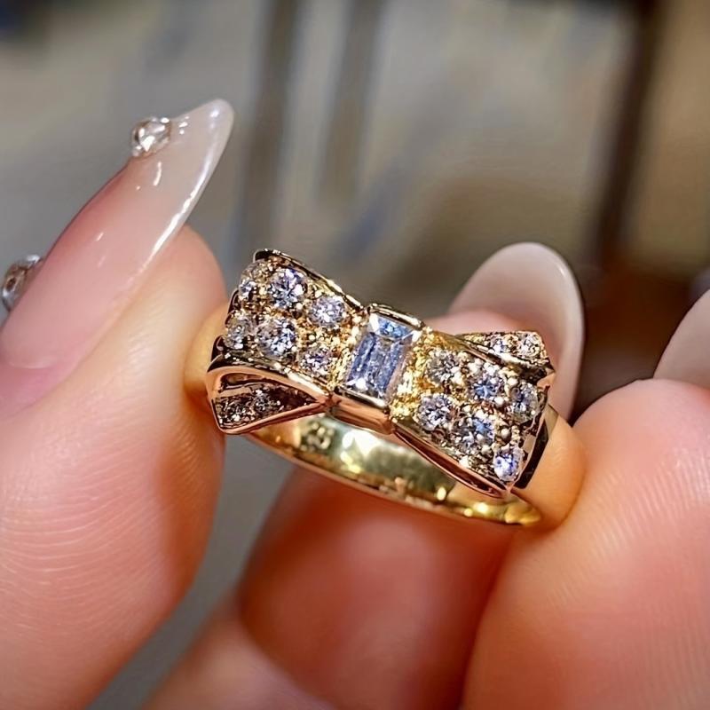 Elegant ring featuring a Japanese bow design with sparkling synthetic zirconia stones. Perfect for daily wear and parties, this versatile piece will complement any outfit year round.