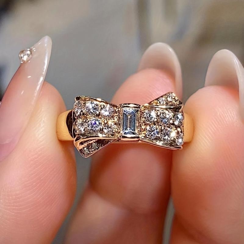 Japanese Style Bow Women's Ring Copper Base with Zirconia Stones