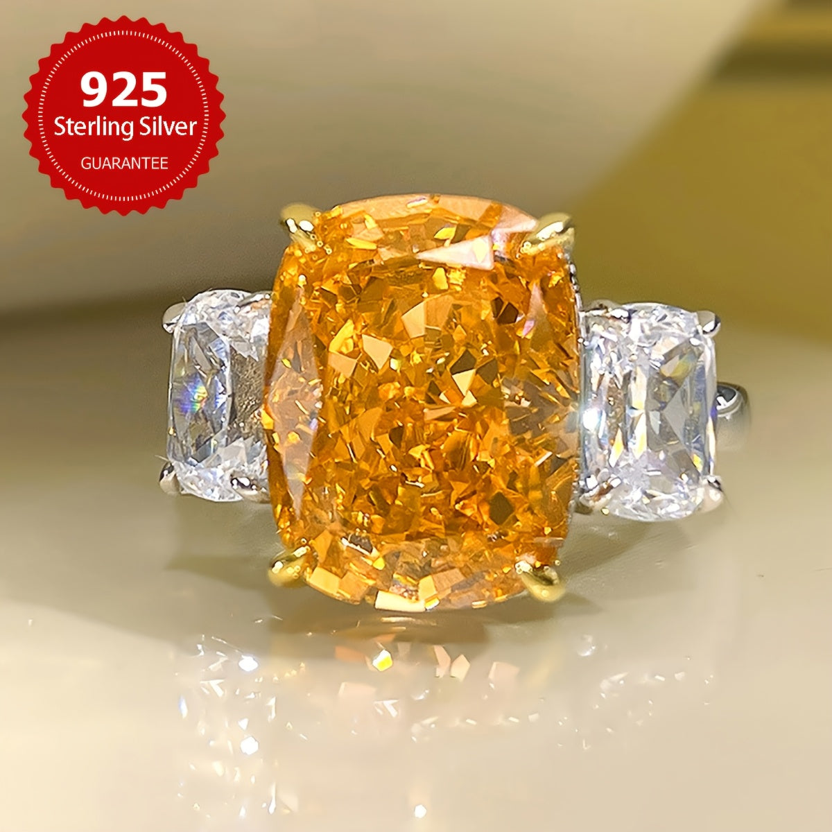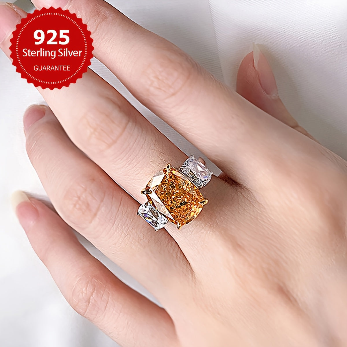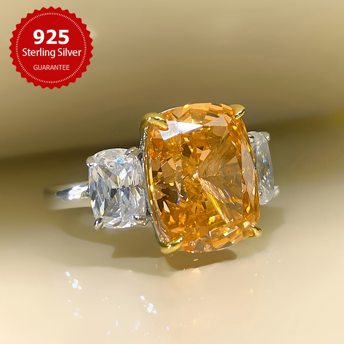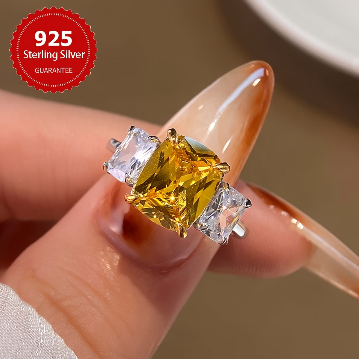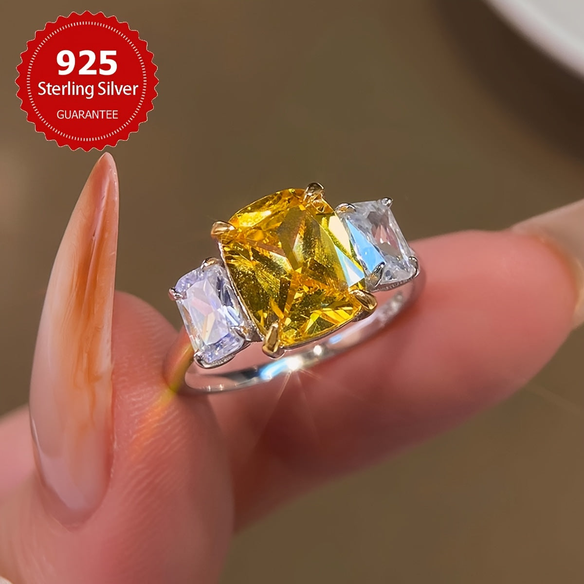 This stunning ring features a large square design with four claw-set synthetic zirconia stones in a beautiful s925 sterling silver setting. Perfect for everyday wear or special occasions.