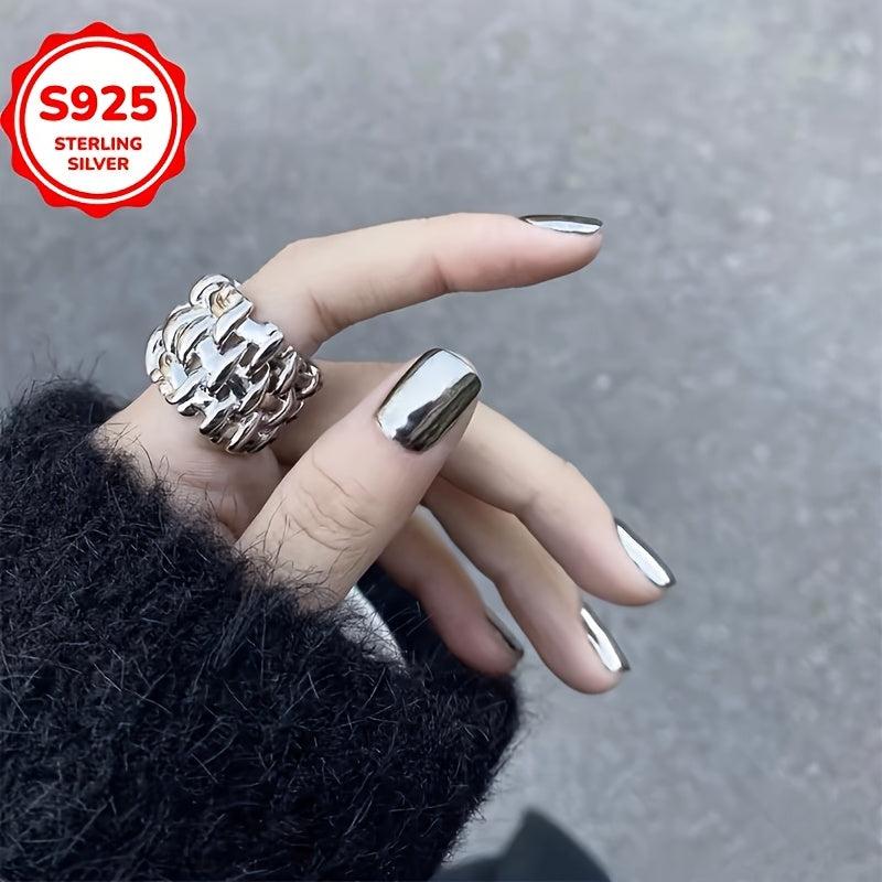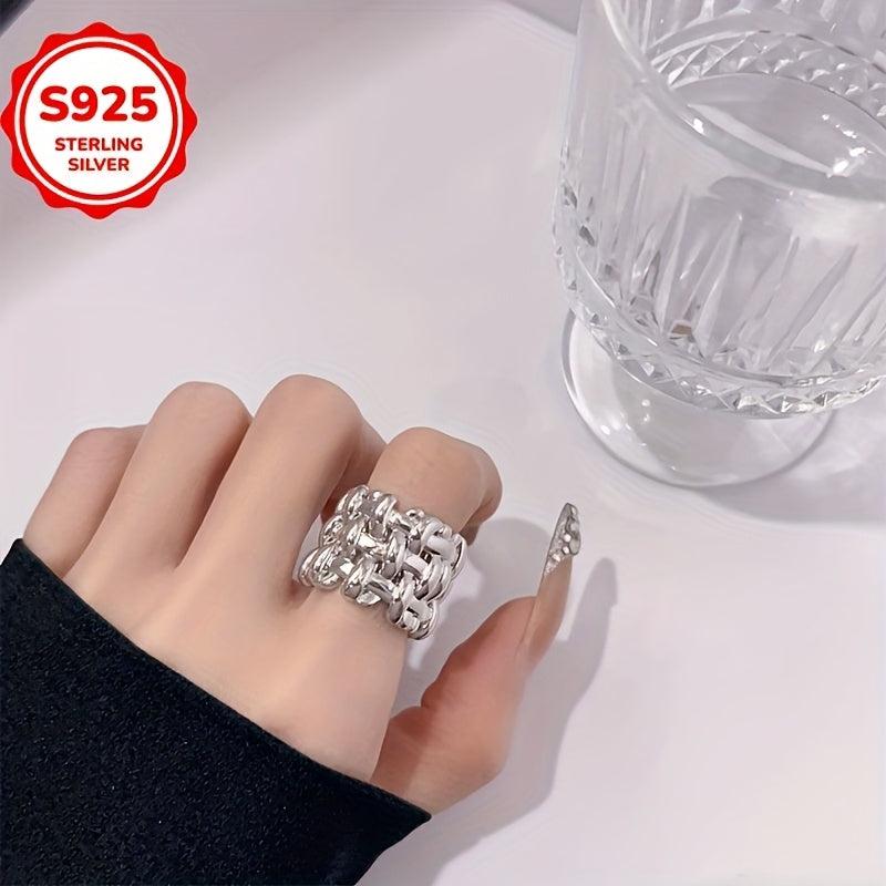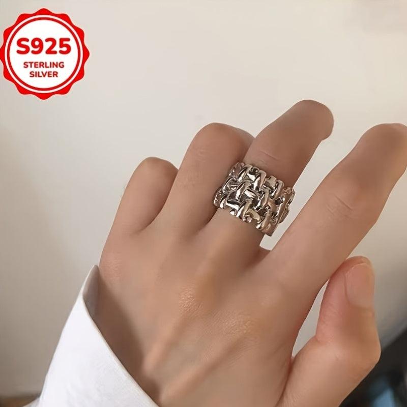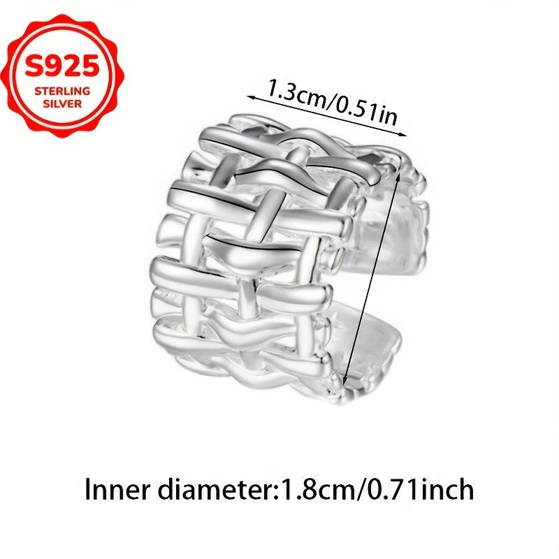 Low Allergy Fashionable Wide Band Grid Weave Open Ring