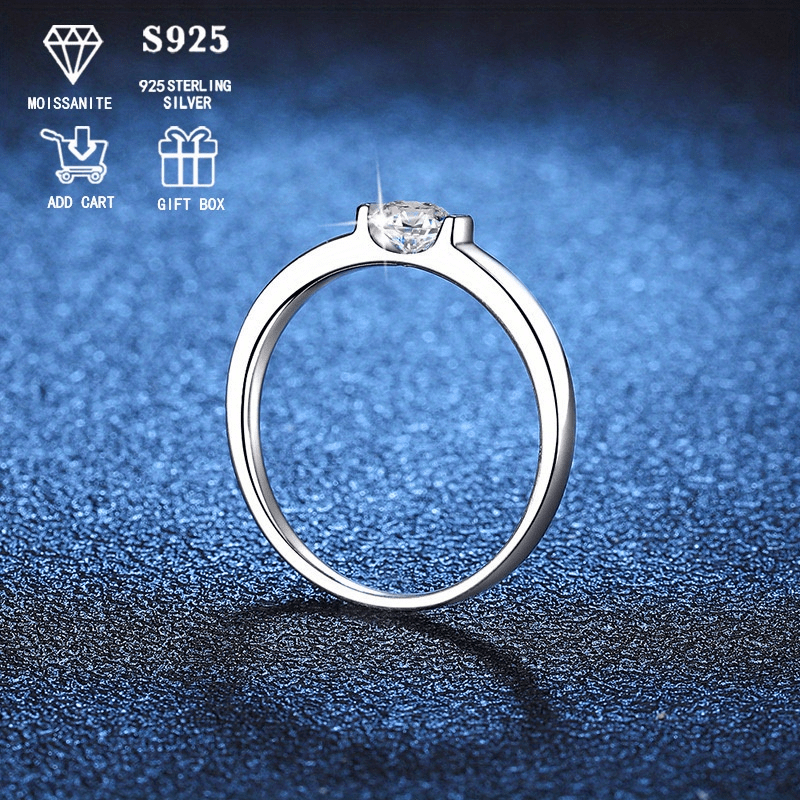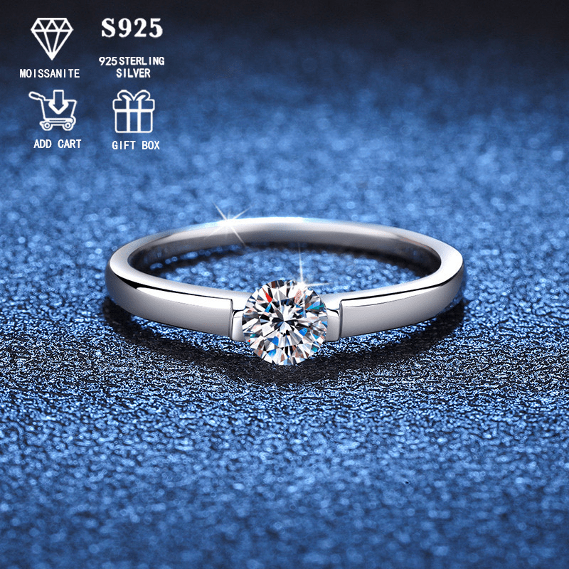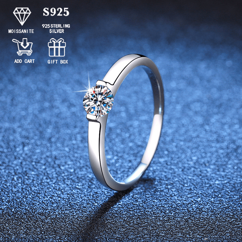 Beautiful and classic 0.5ct Moissanite ring made of hypoallergenic S925 Sterling Silver. Perfect anniversary gift, comes in a box packaging.