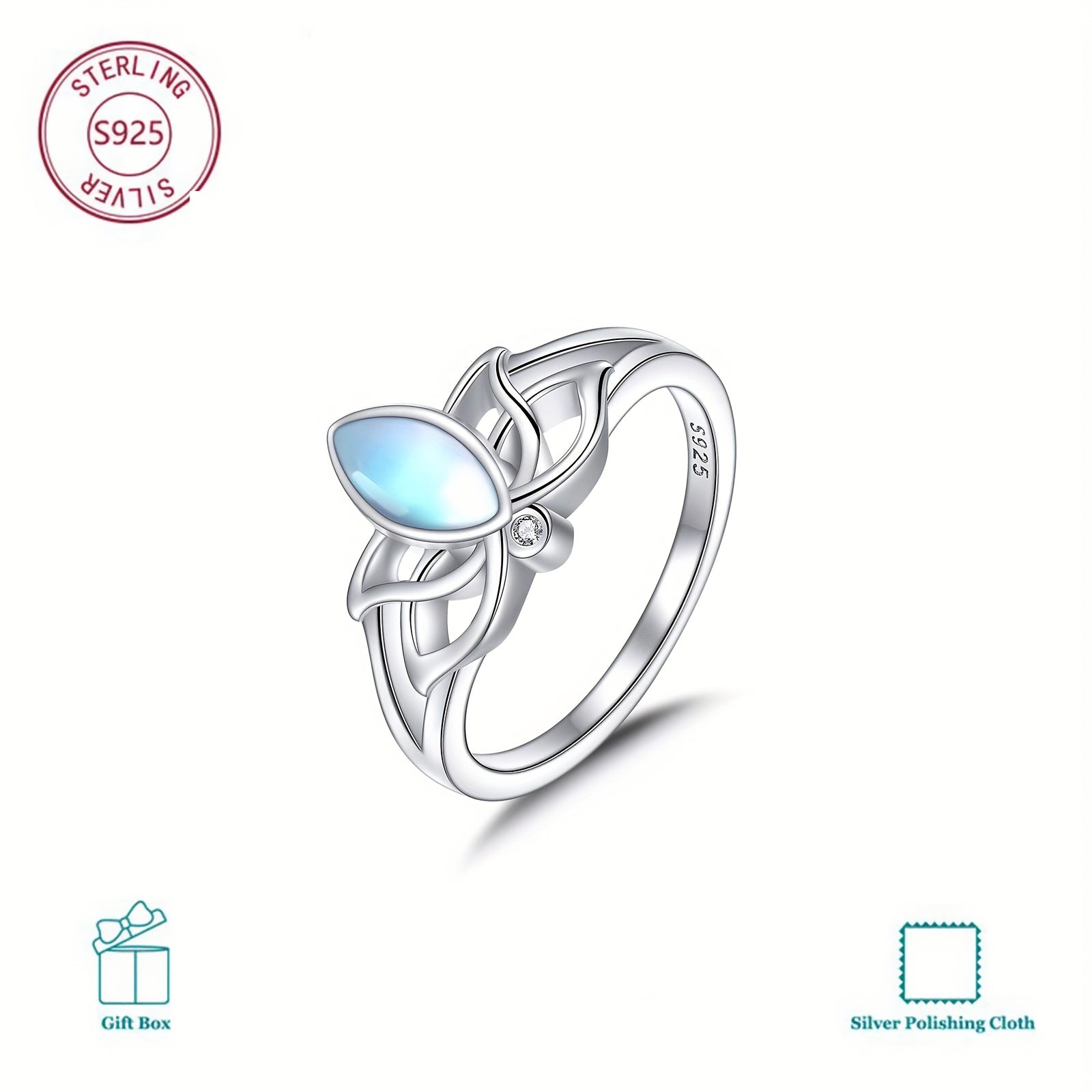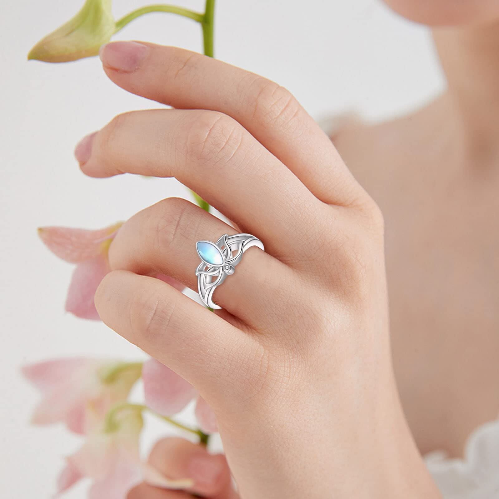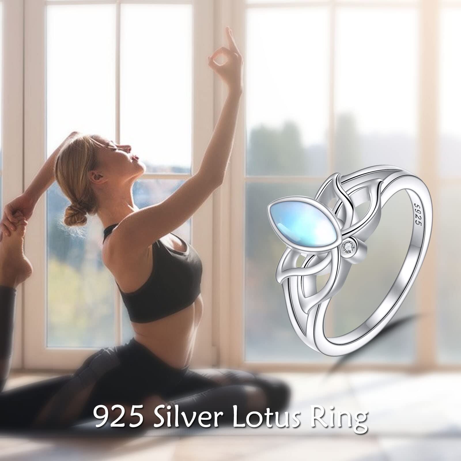 Moonstone Lotus Flower Ring Sterling Silver for Women s 6