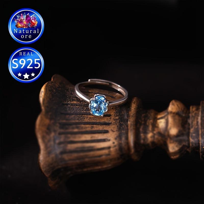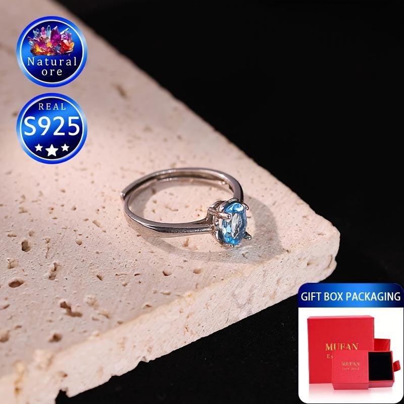 This stunning MUFAN S925 silver ring features a topaz gemstone, making it the perfect accessory for everyday wear. Its adjustable band ensures a comfortable fit for anyone. This ring is ideal for those born in November or anyone who loves topaz.