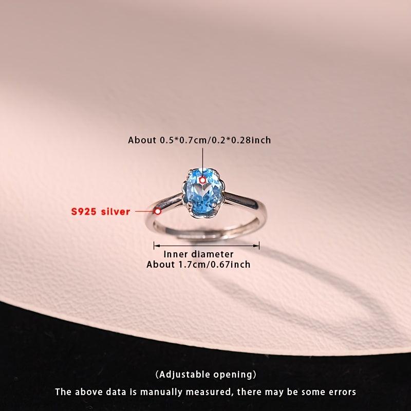 MUFAN S925 Silver Topaz Ring Adjustable Band November Birthstone Gift