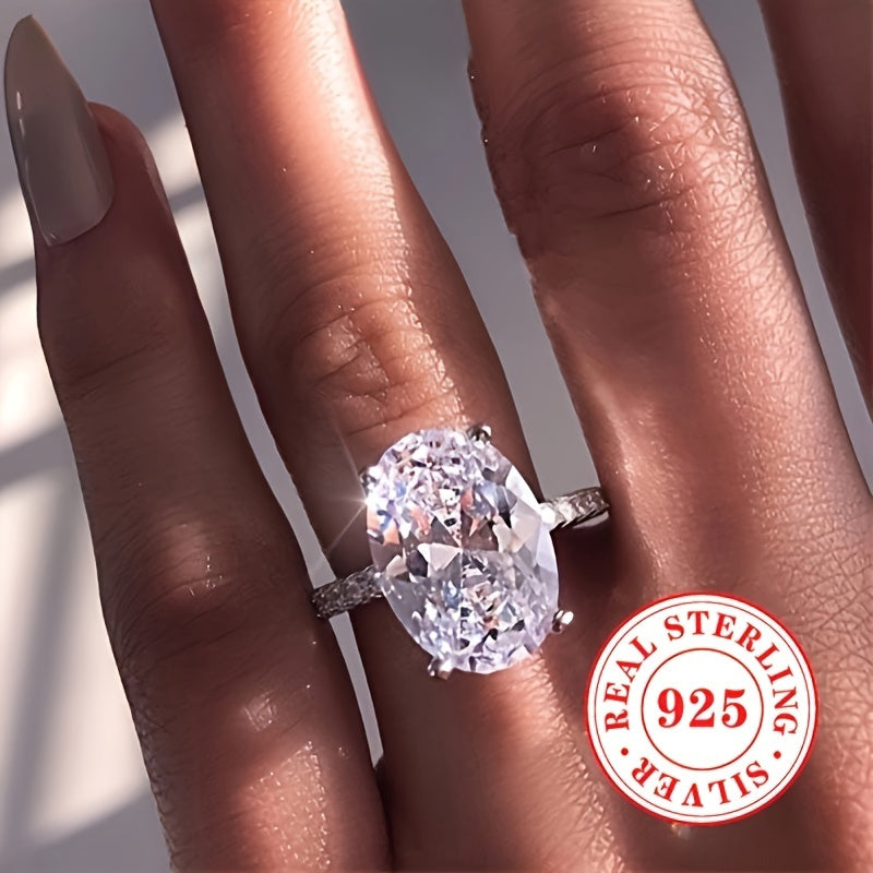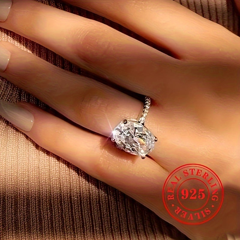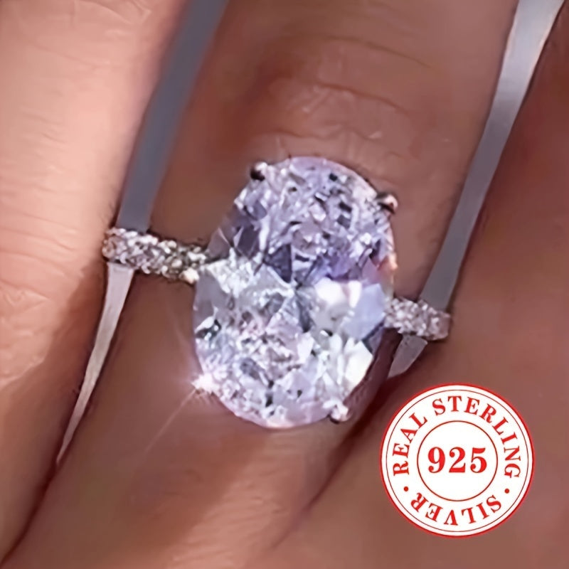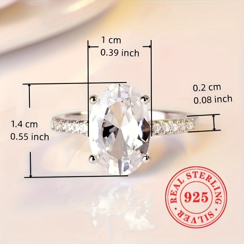 This elegant engagement ring features a 4 prong inlay oval cut zirconia set in S925 pure silver. Perfect for a bridal wedding or anniversary gift.