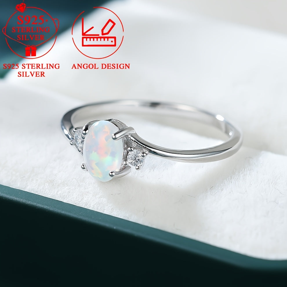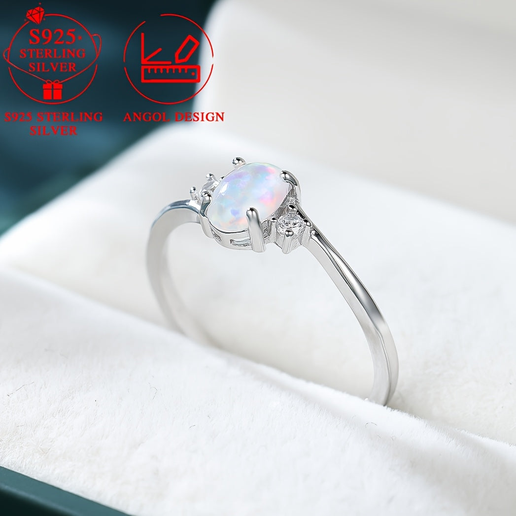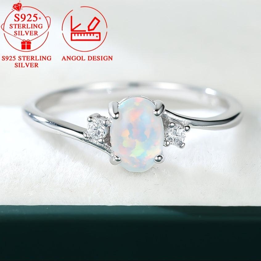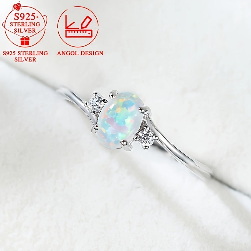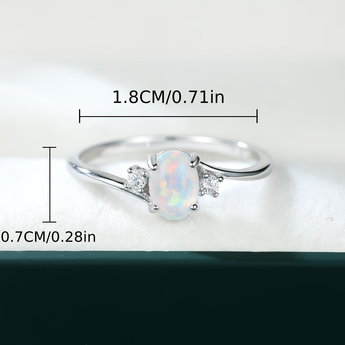 This beautiful oval synthetic opal engagement ring features a classic design made of 925 sterling silver plated with crystals, perfect for weddings and all-season wear.