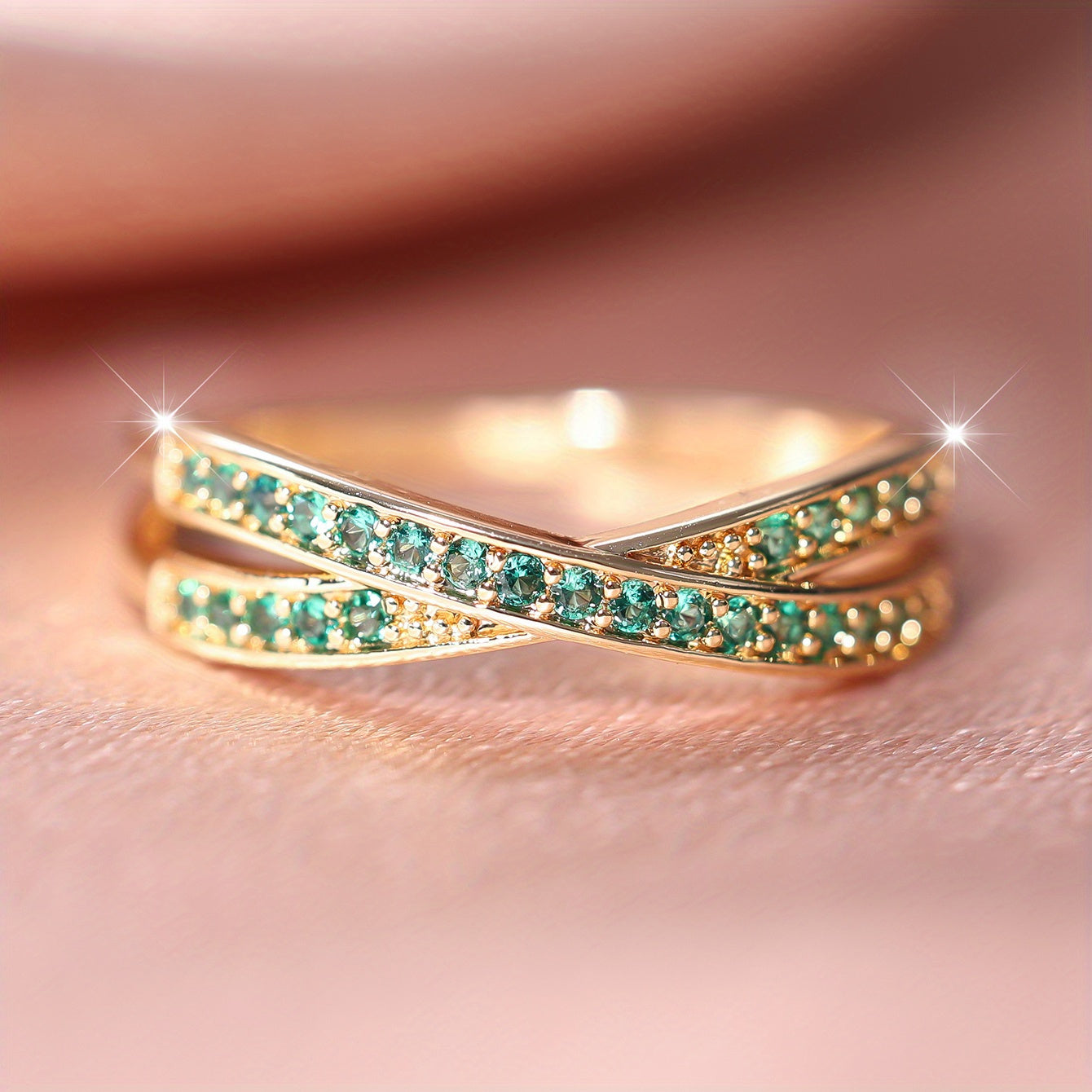 This stunning promise ring features 18k gold plating and is adorned with sparkling paved zirconia stones. It's the perfect gift for your loved one, ideal for engagement or wedding.