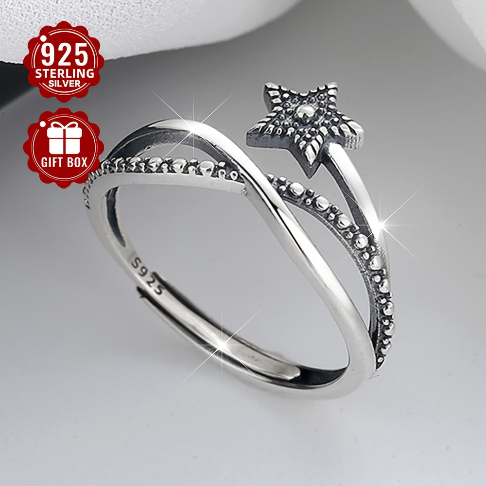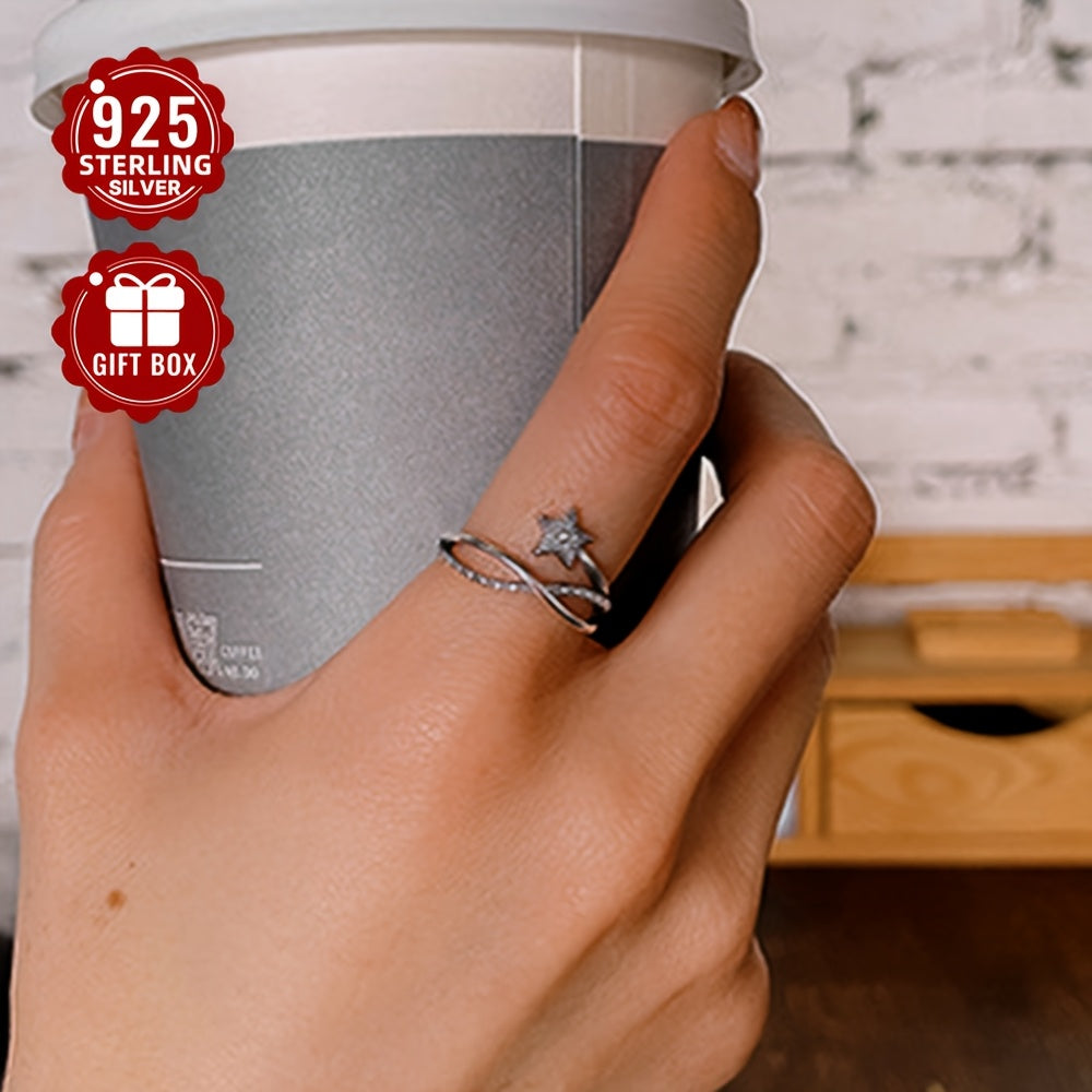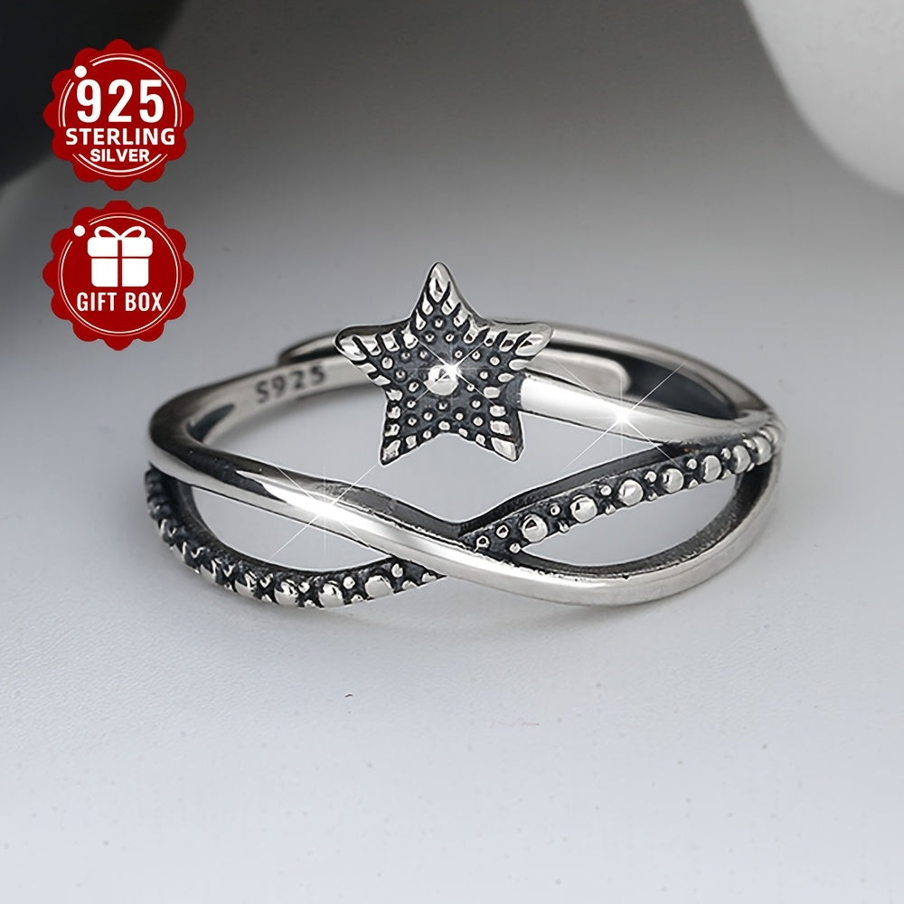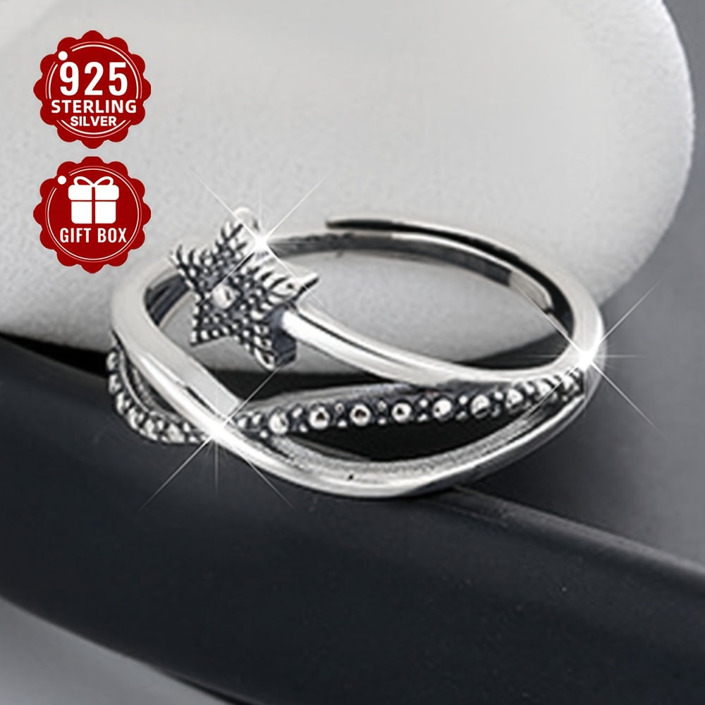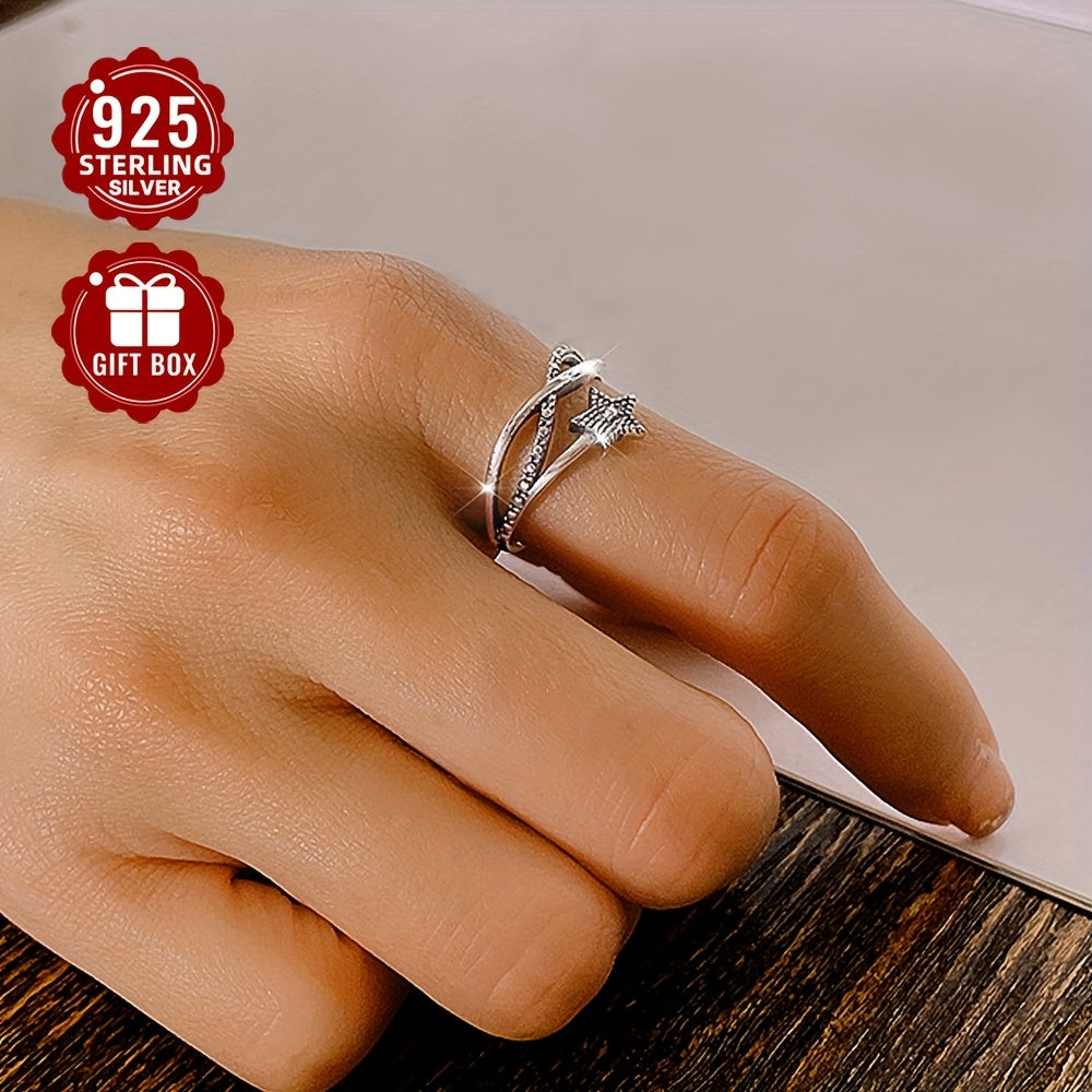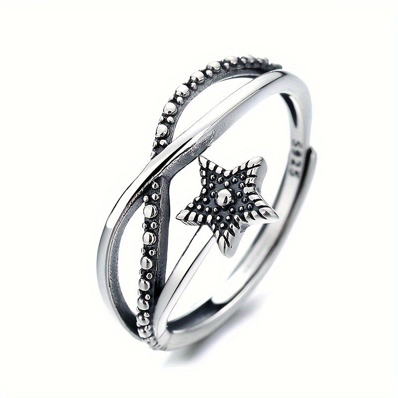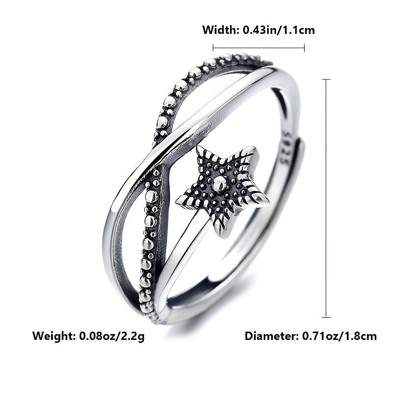 Add a touch of elegance to your look with this S925 double layer cross ring featuring a five-pointed star design. Perfect for a sweet lady who loves hot selling styles.
