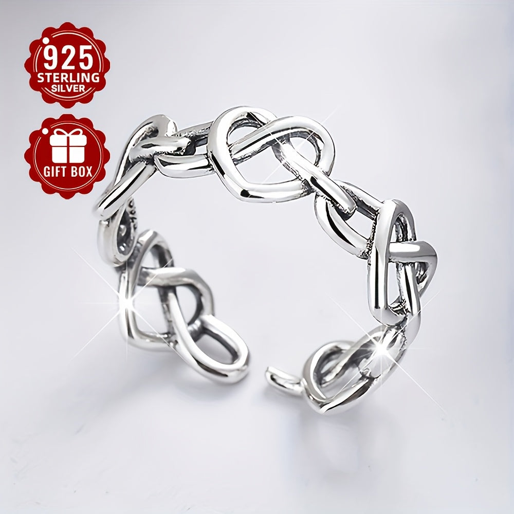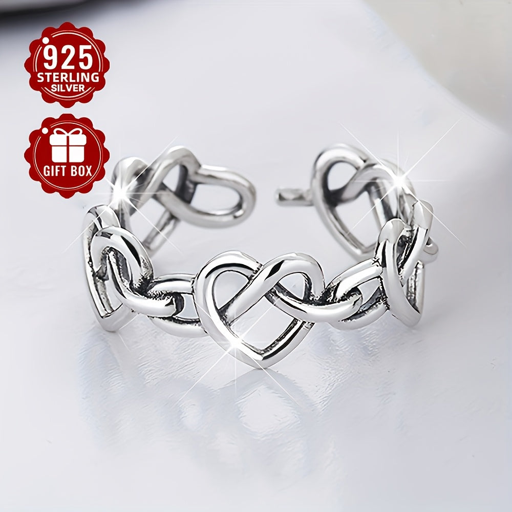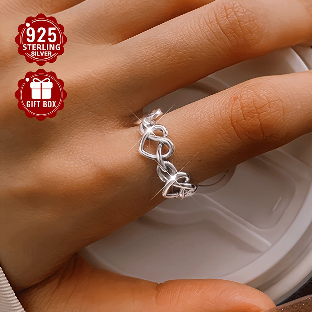 This pure S925 silver ring features a hollow heart design, fresh and sweet. Versatile for both men and women.
