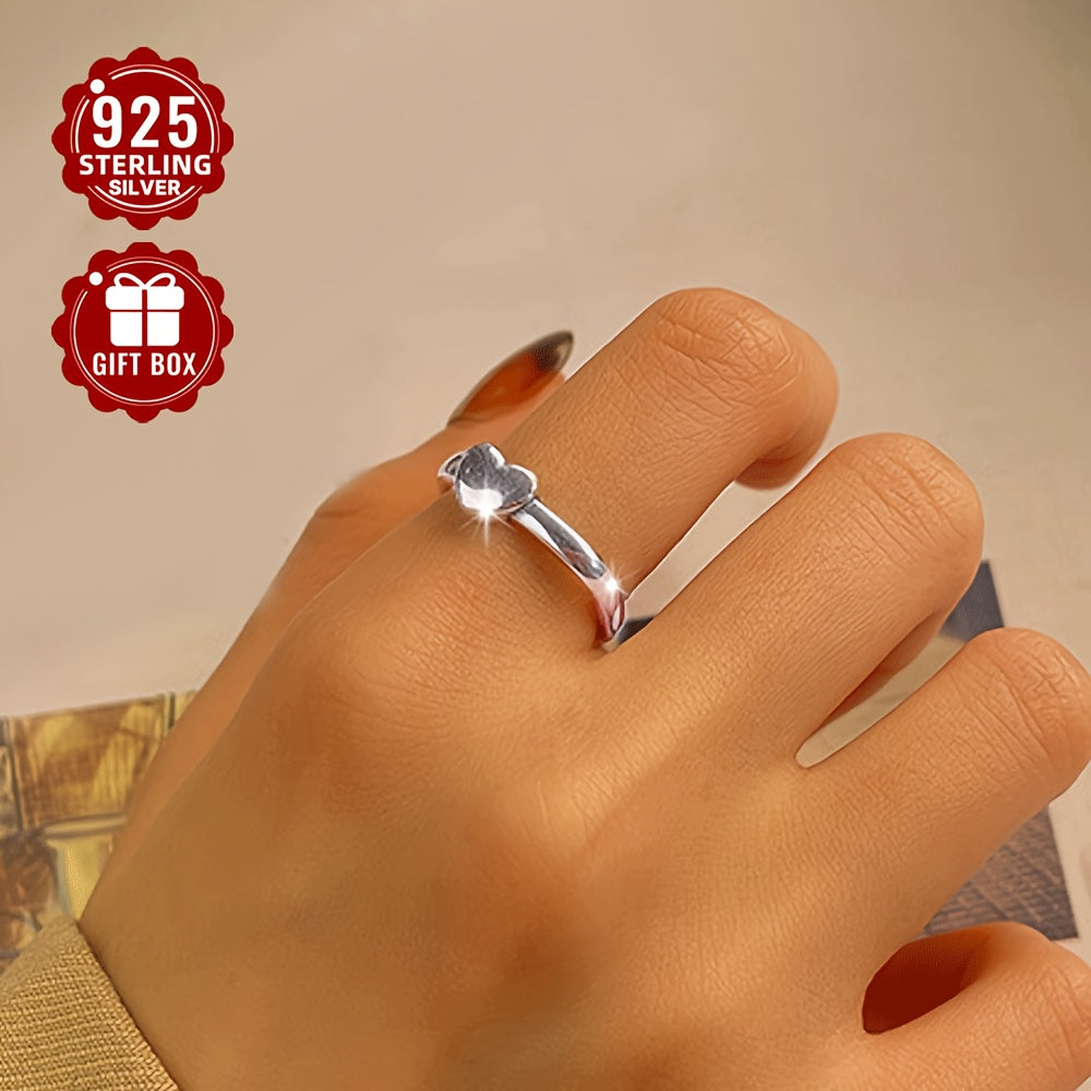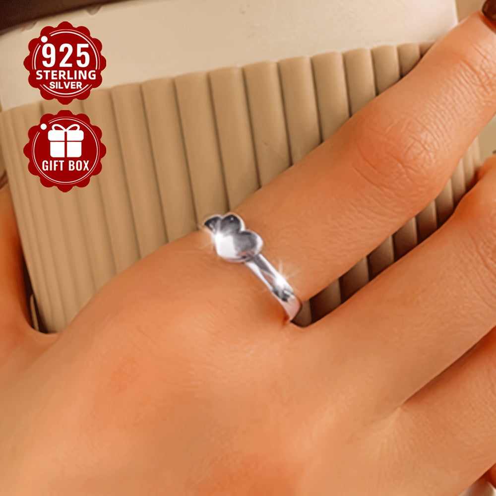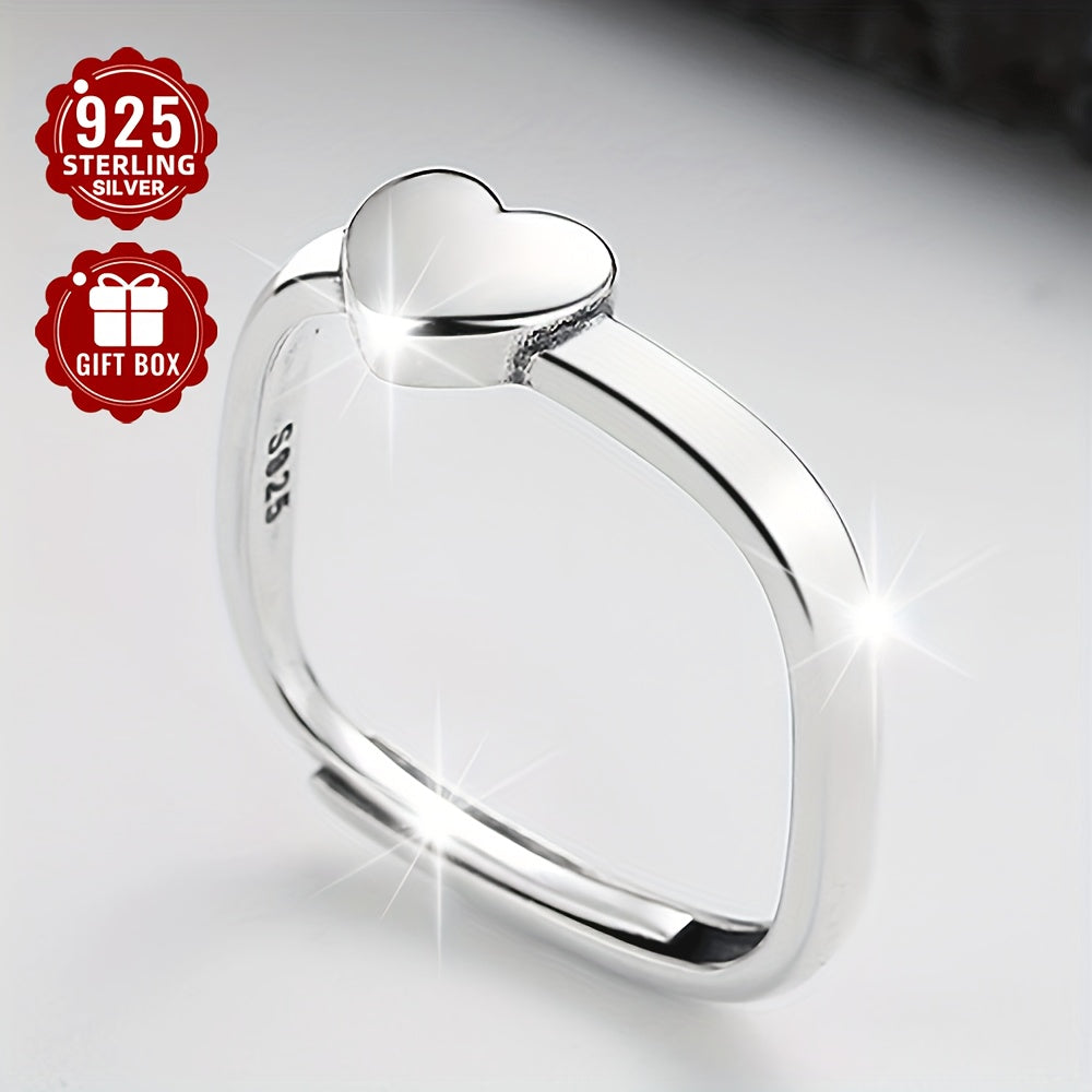 This stylish adjustable ring is made of pure S925 silver with a small heart square design. Perfect for dating activities and casual wear.