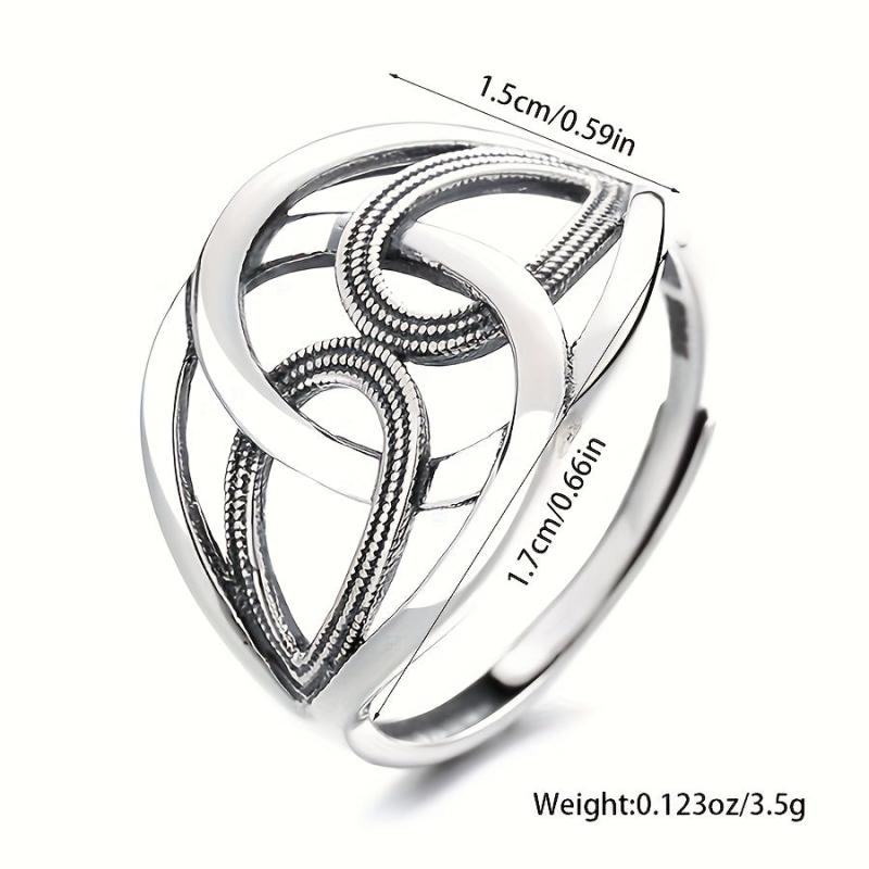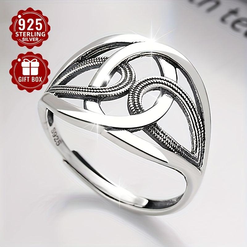 This S925 pure silver ring features an irregular line intertwined design with a wide opening, perfect for a retro hip hop look at rock parties. Low sensitivity for comfortable wear.