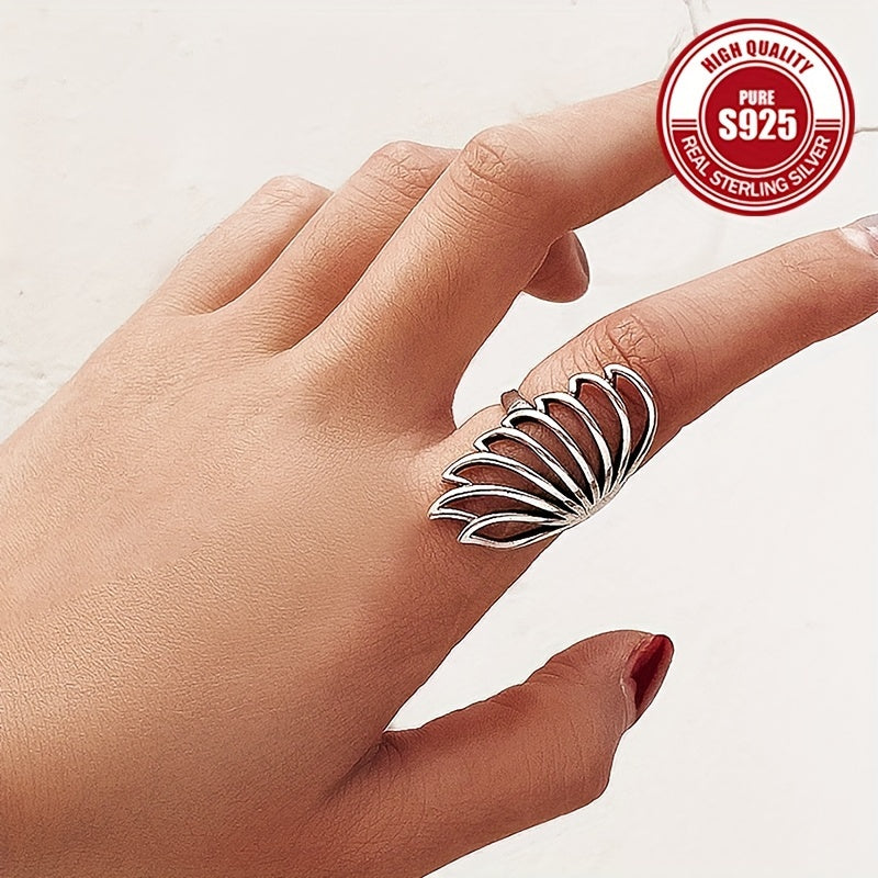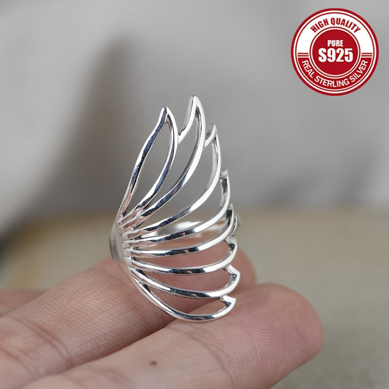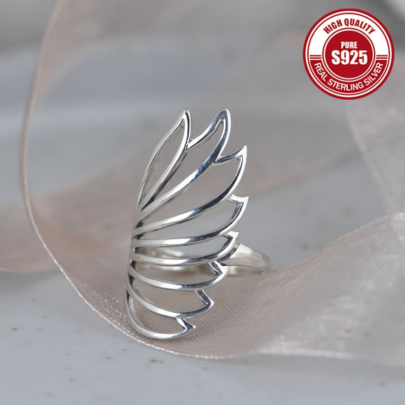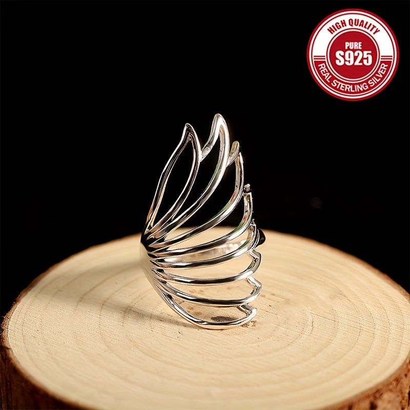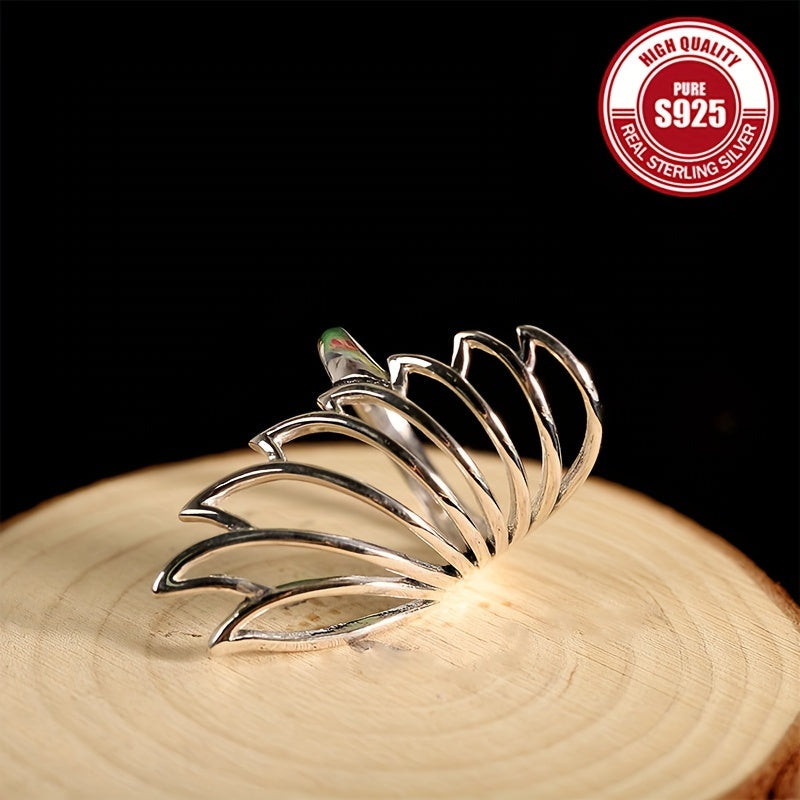 This S925 pure silver feather ring is an ideal gift for birthdays, Christmas, Valentine's, and more. It is low allergy and adjustable in size, weighing 4.5g. Perfect for everyday wear.
