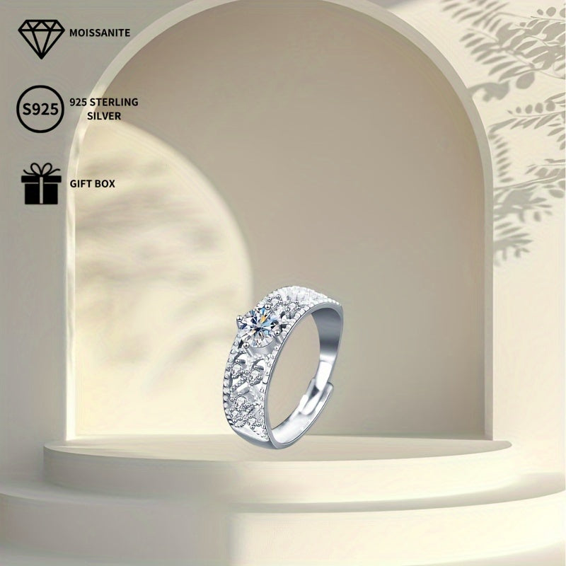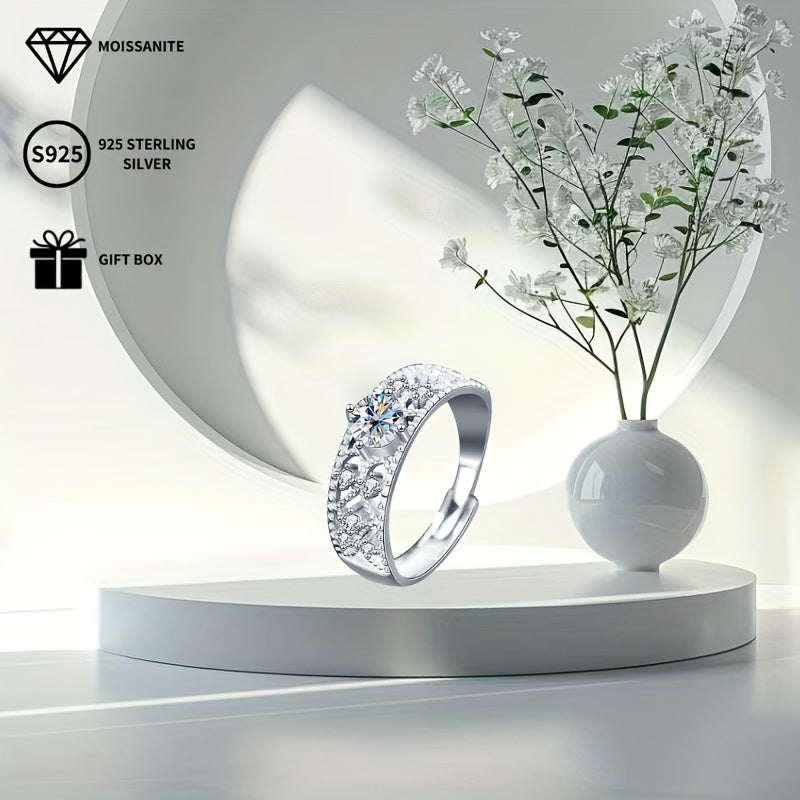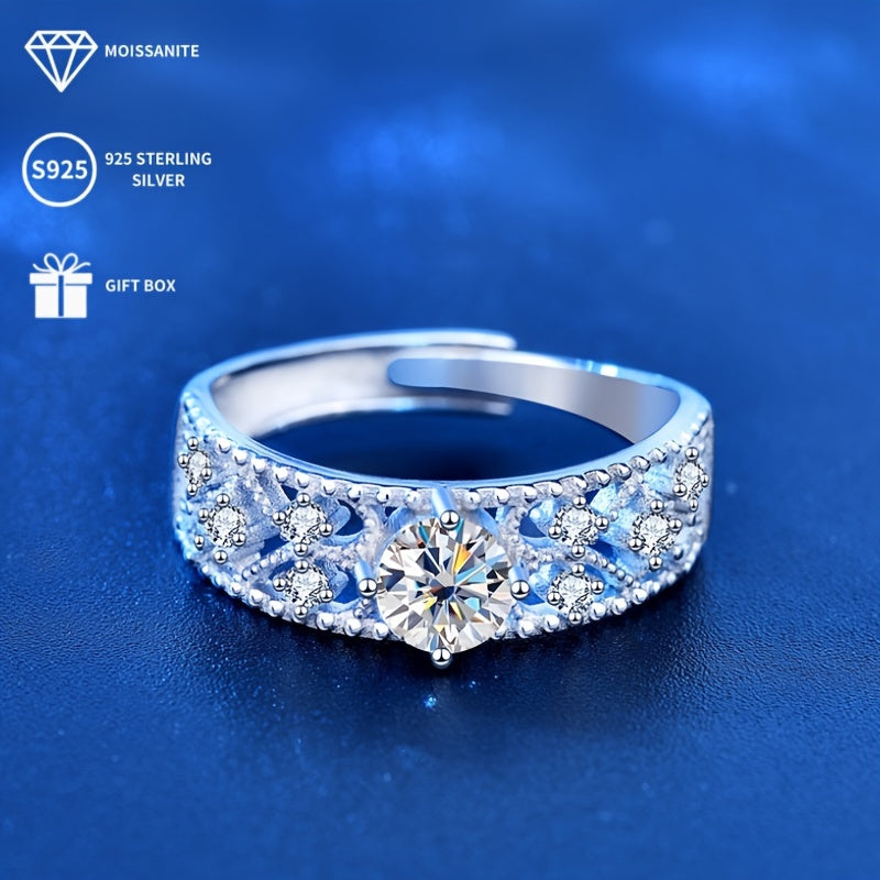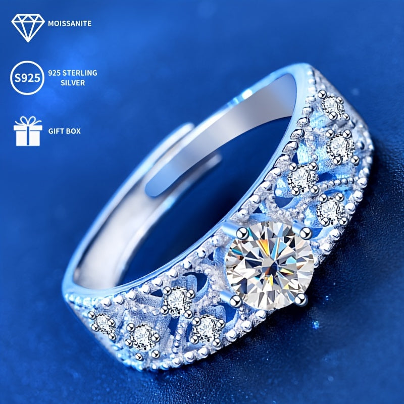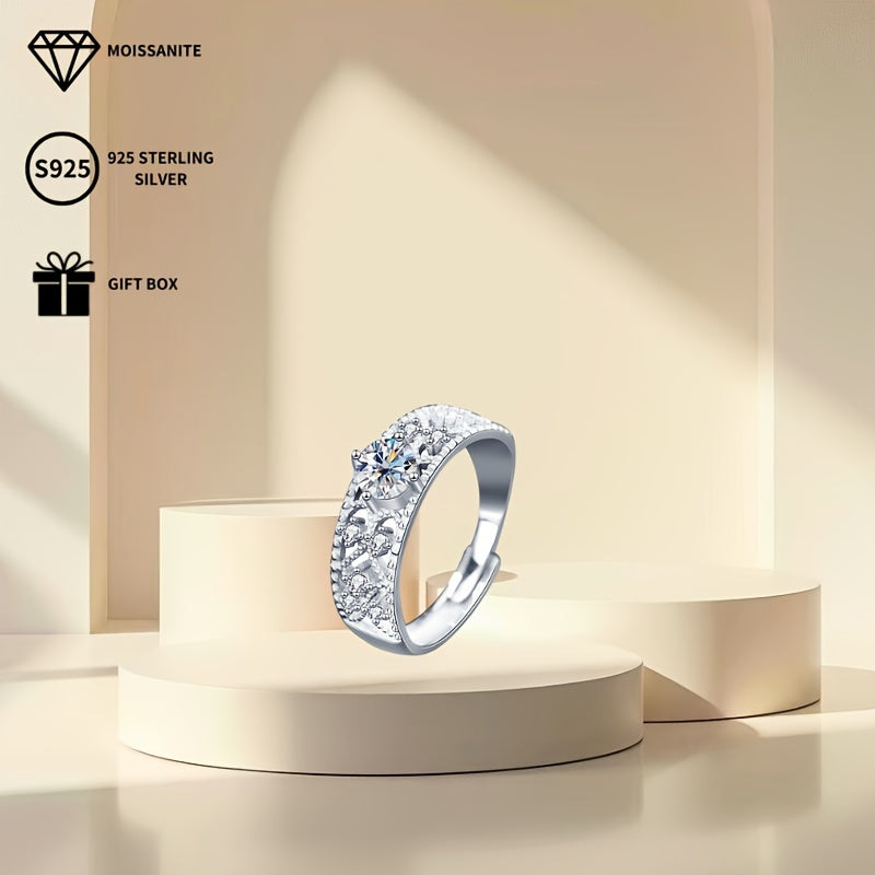 Stunning open ring featuring a 0.5ct moissanite solitaire with sparkling accents. Ideal for proposals, weddings, banquets, or as a thoughtful gift for your girlfriend or wife.