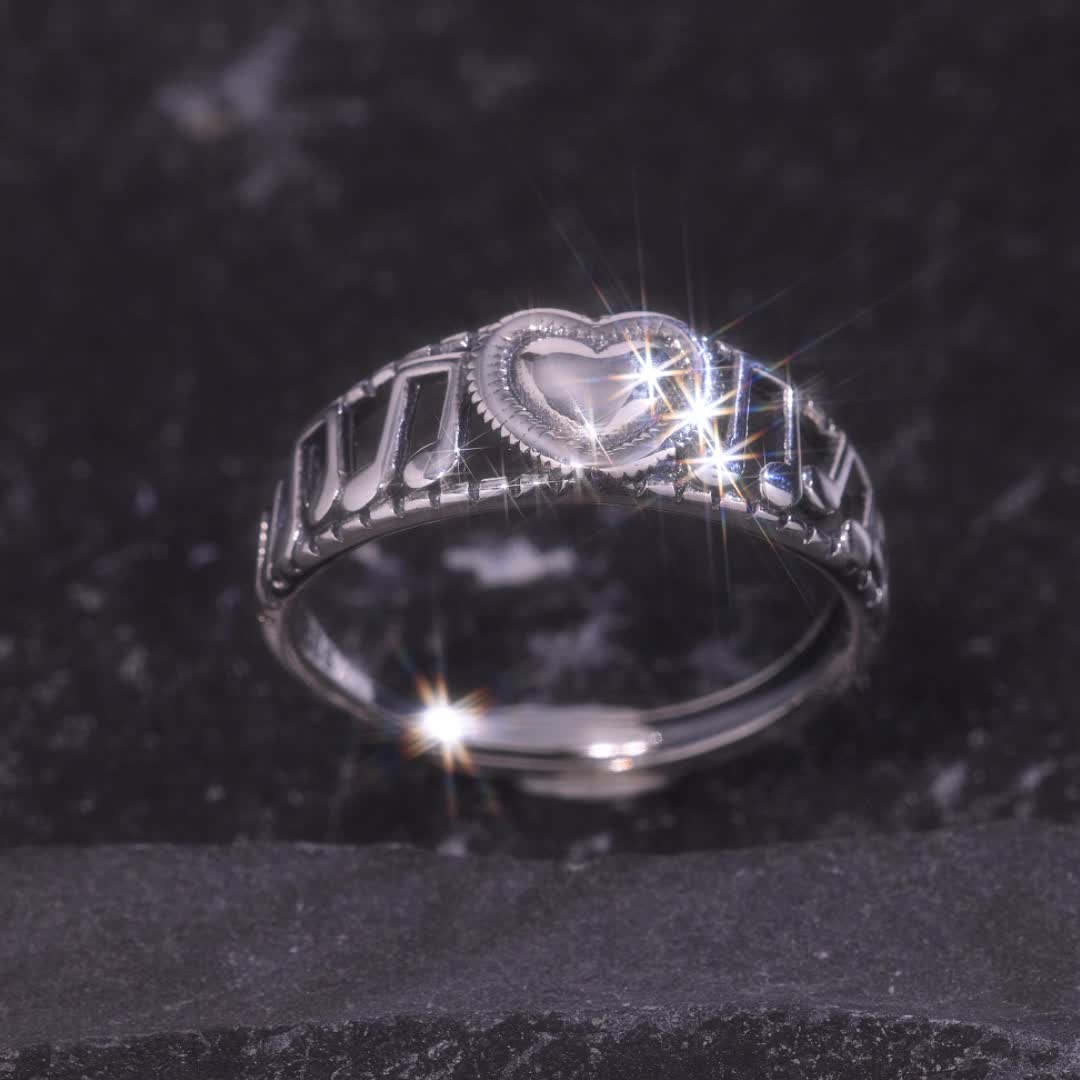This versatile index ring features a musical note design on five-line music score. Made of pure silver, it weighs approximately 2.31g.