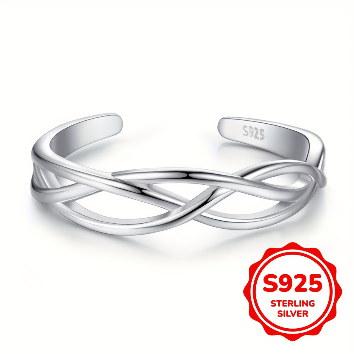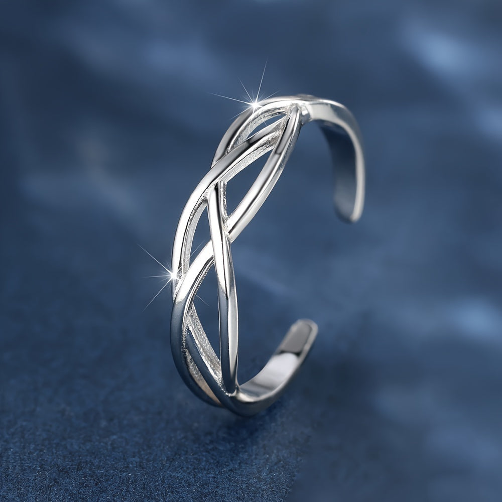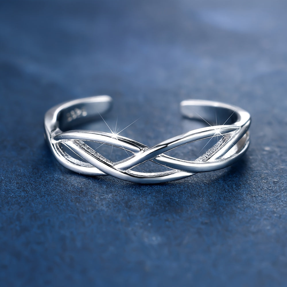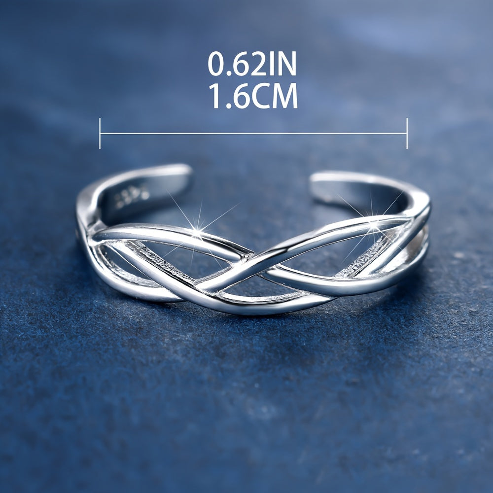 This elegant S925 sterling silver open toe ring features three layers of hollow design, making it a unique and stylish piece of jewelry for women. Weighing only 1.6g (0.06oz), it is lightweight and comfortable to wear.