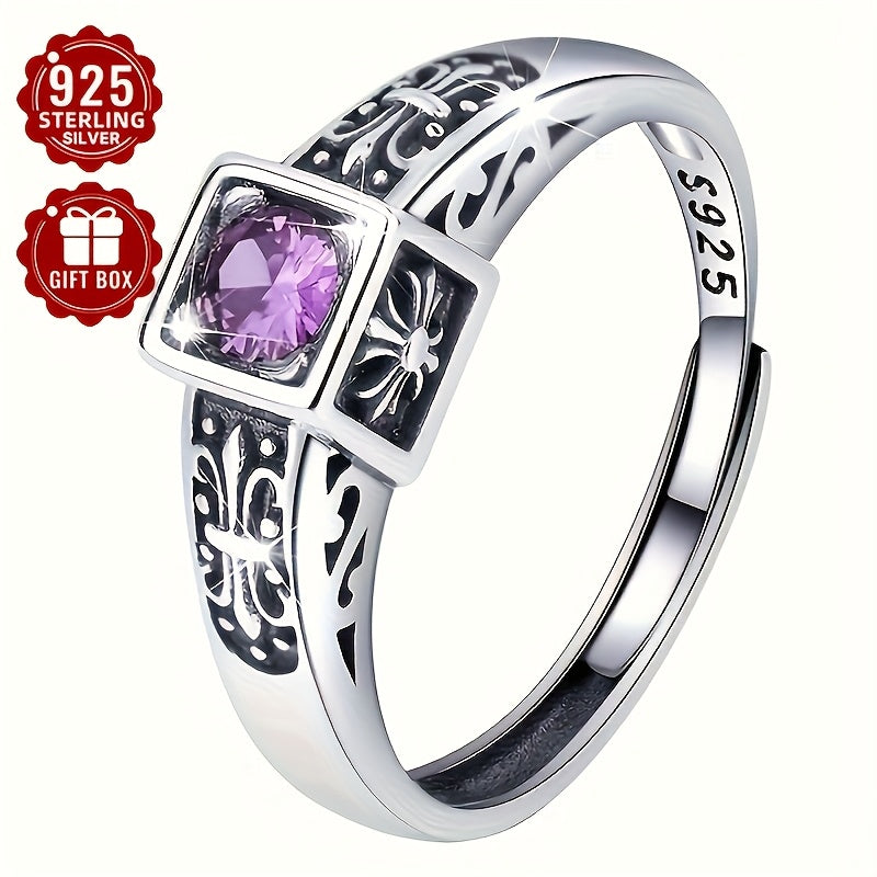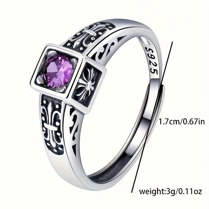 This personalized adjustable ring features a retro rapper style with a purple synthetic zirconia cross. Ideal gift for the go-getter woman in your life.