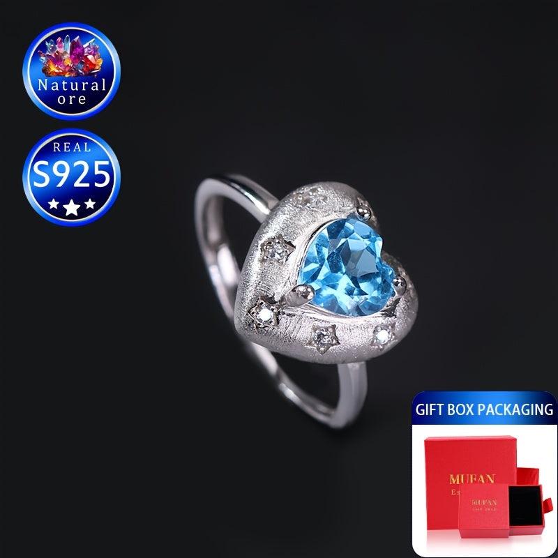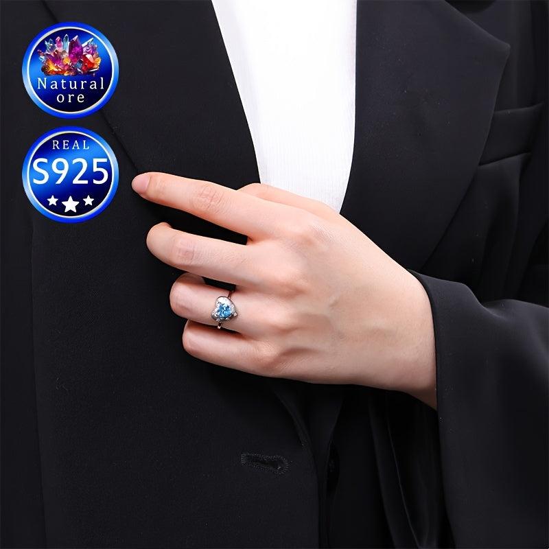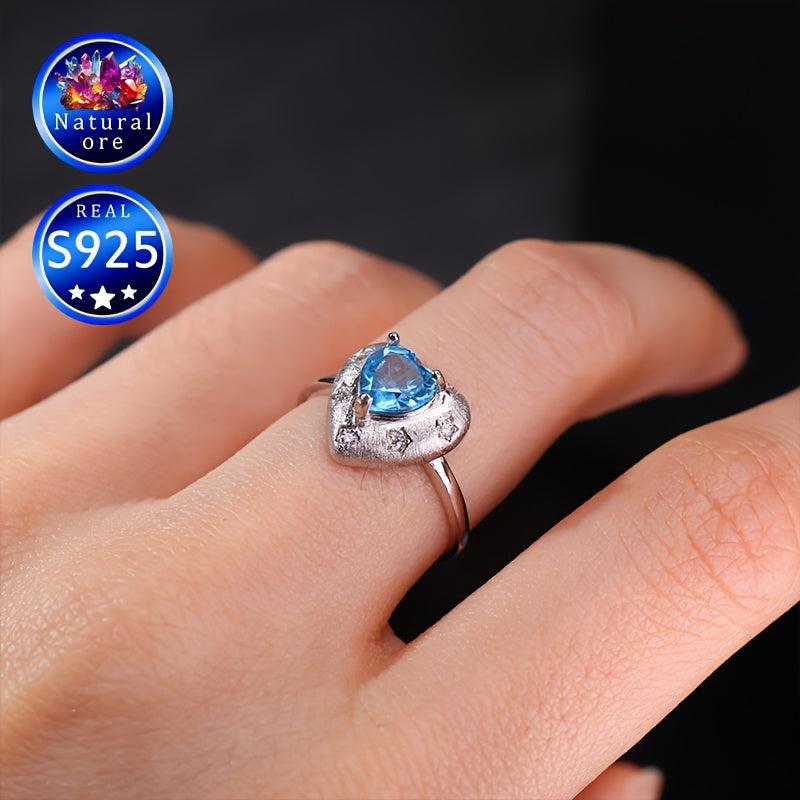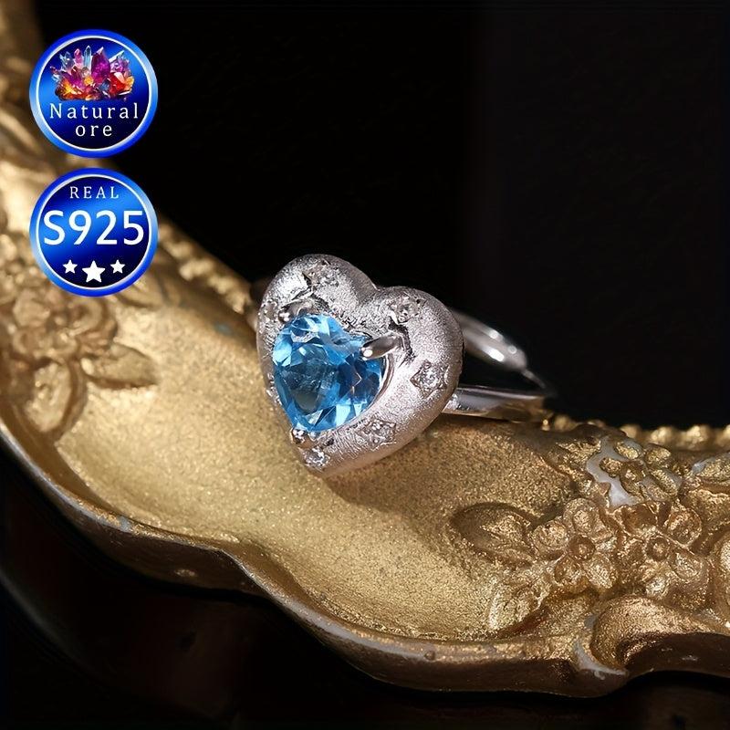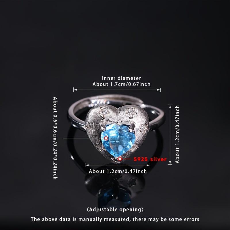 This exquisite ring features a synthetic topaz gemstone set in a silver open heart design. It is perfect for daily wear and makes a great gift for any occasion. Each natural stone may have slight variations, adding to its unique charm.