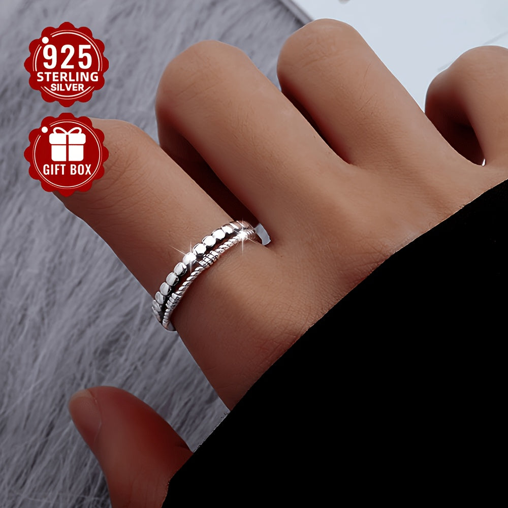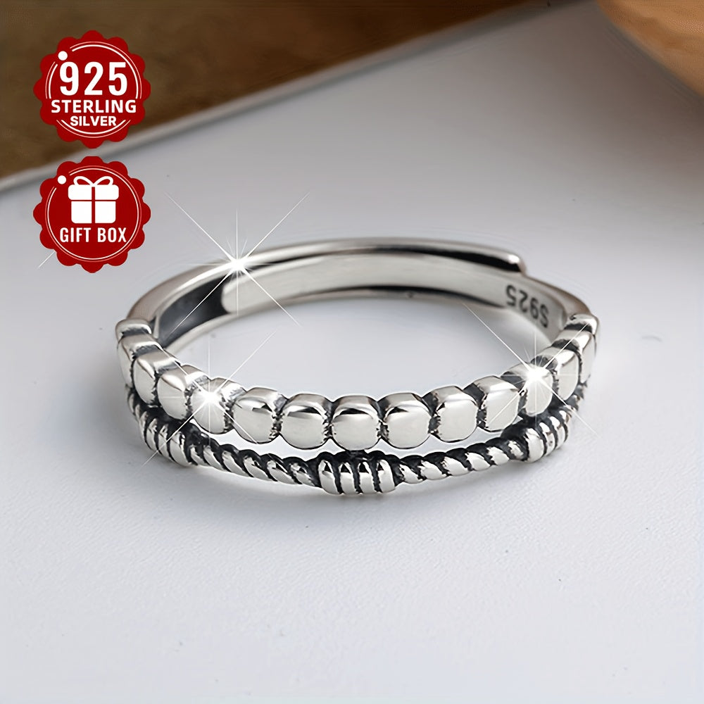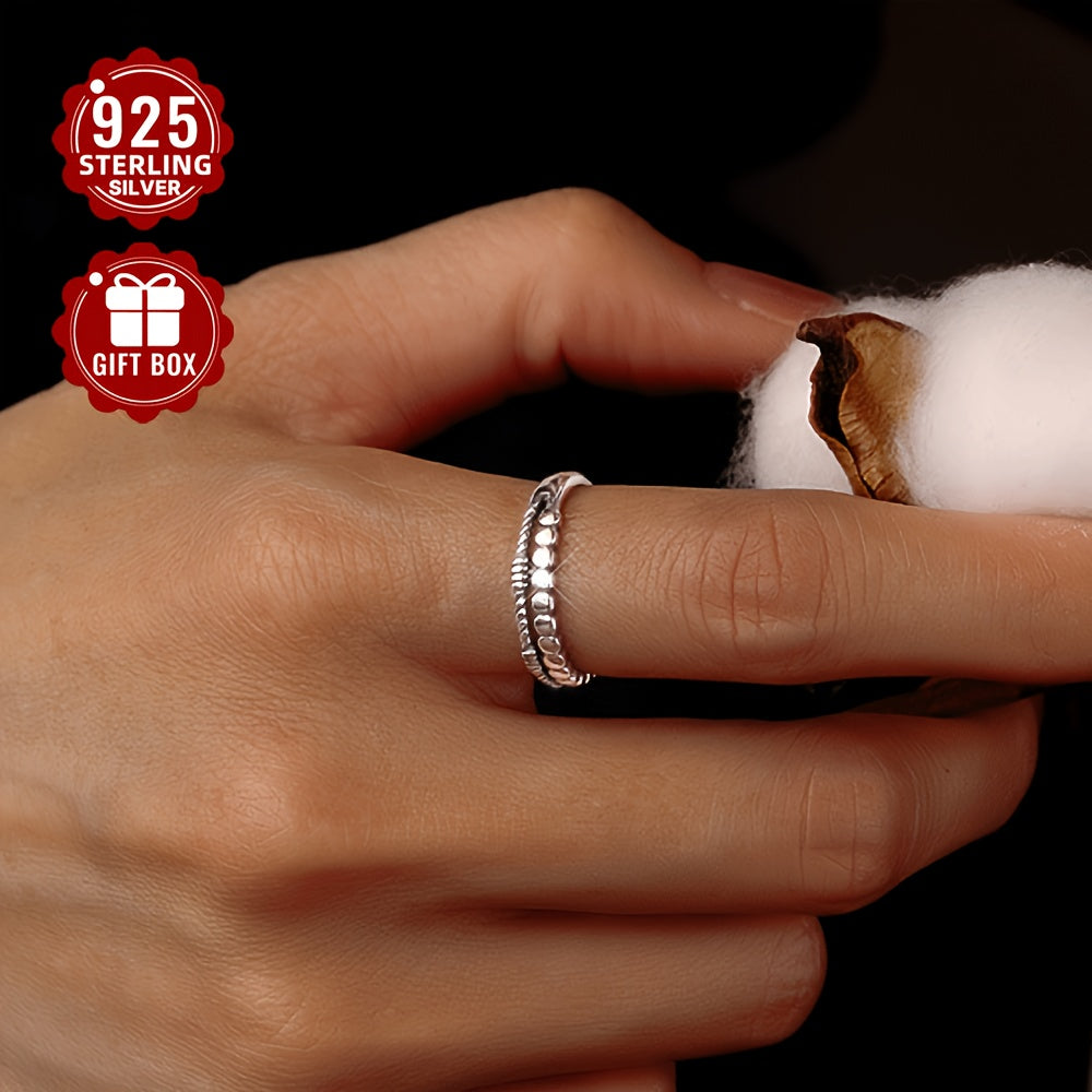 Enhance your style with this S925 pure silvery ring, featuring a retro geometric chain design. Perfect for daily wear, travel, and play, this unique women's index ring weighs 0.06g.