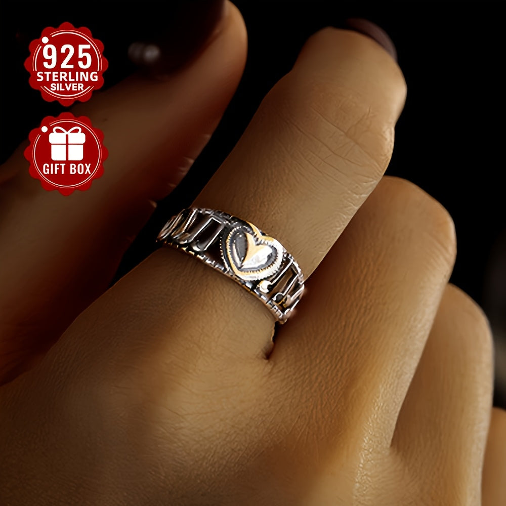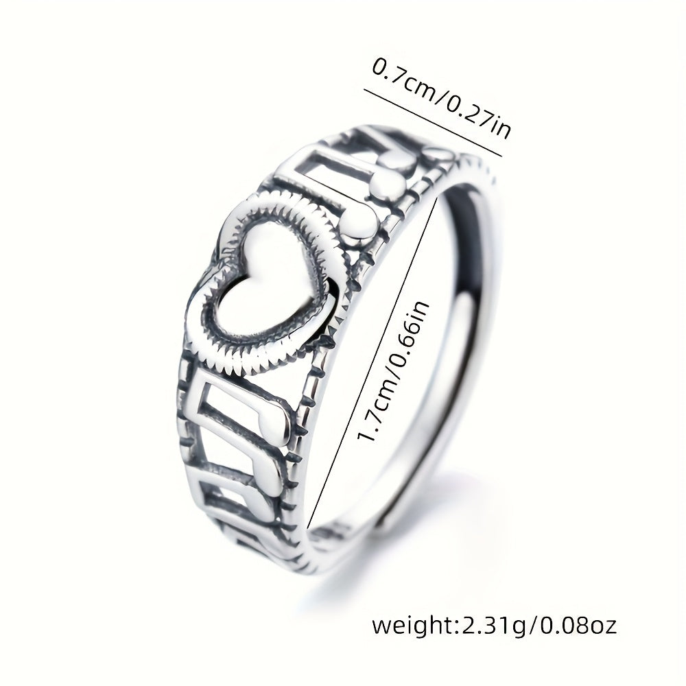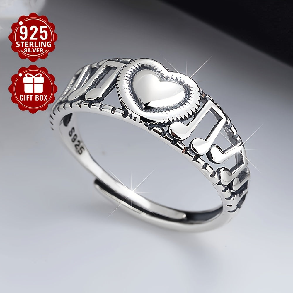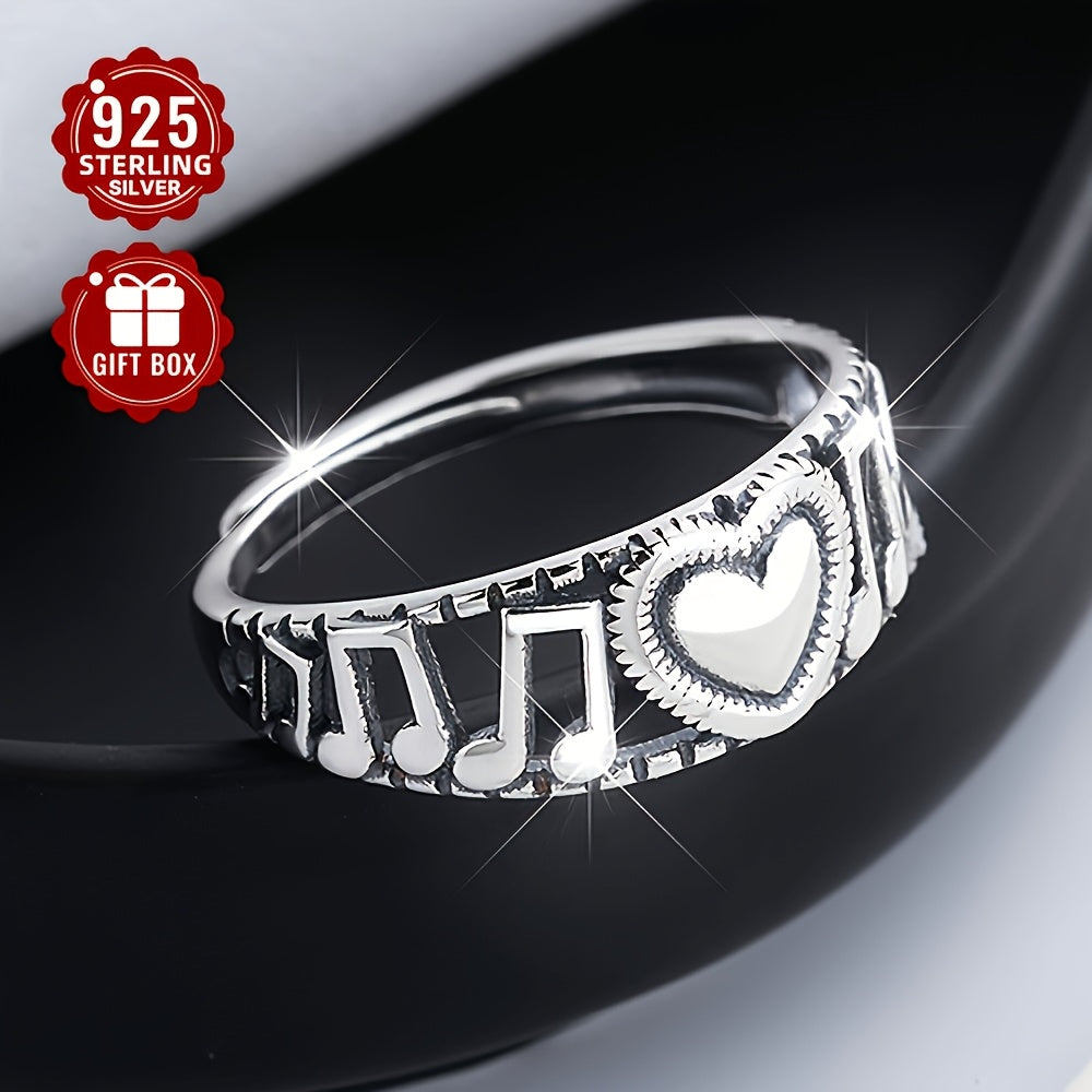 S925 Silvery Music Note Love Ring Open Adjustable Women's Fashionable Ring