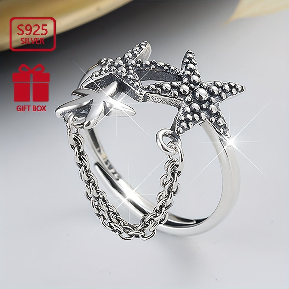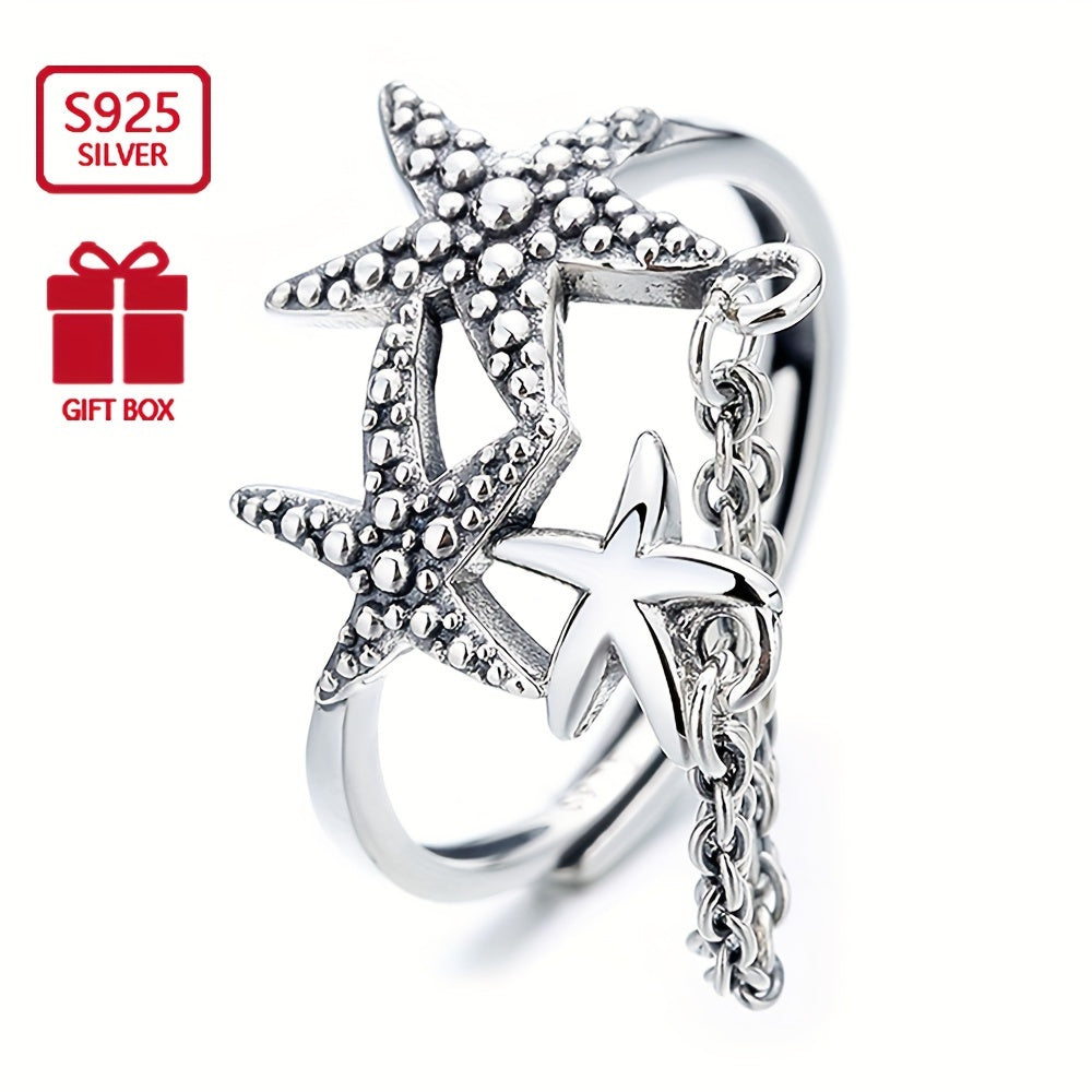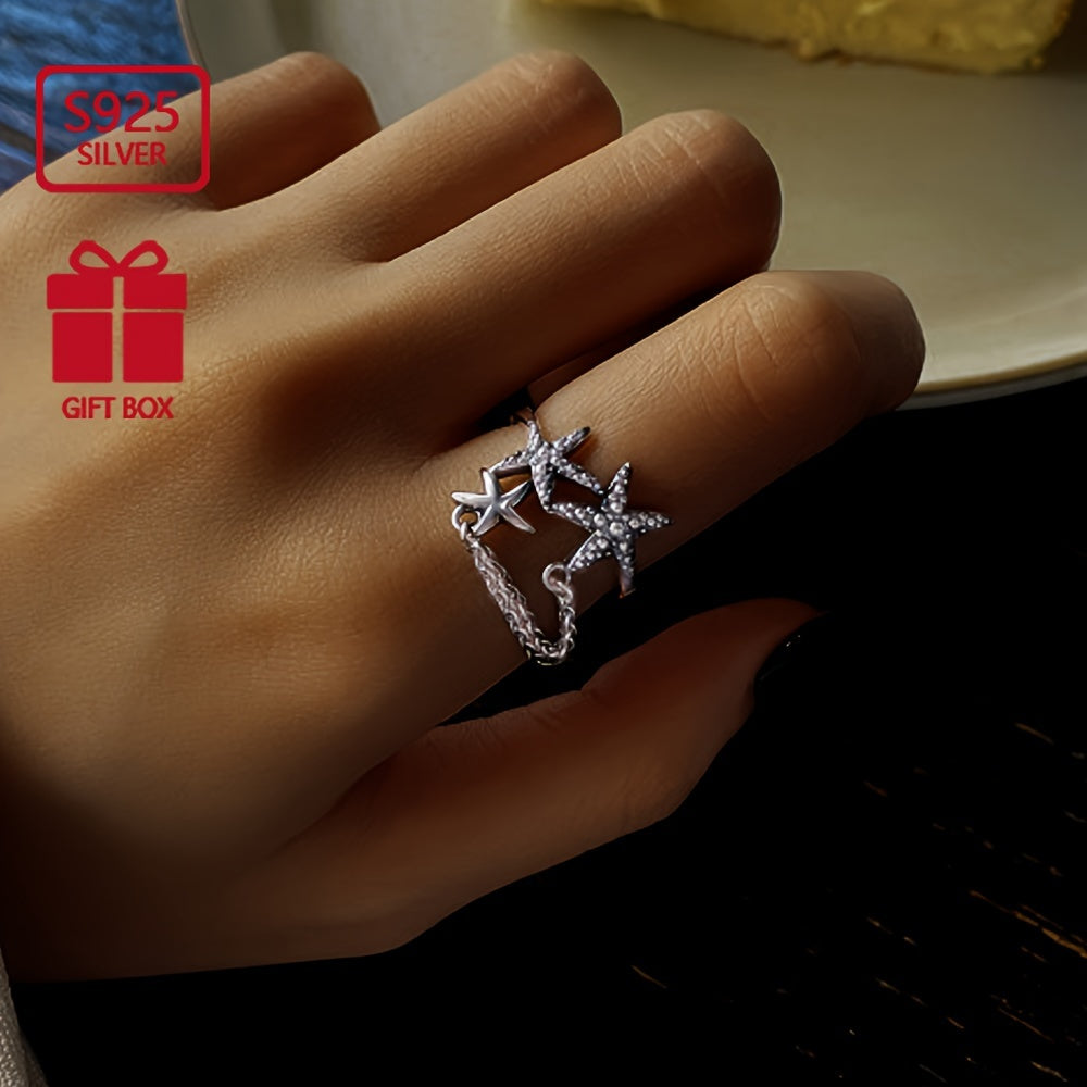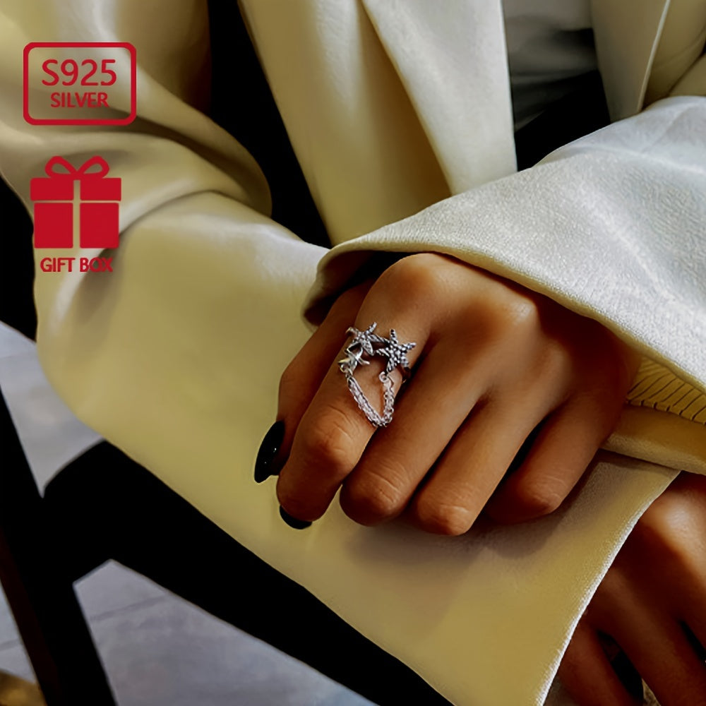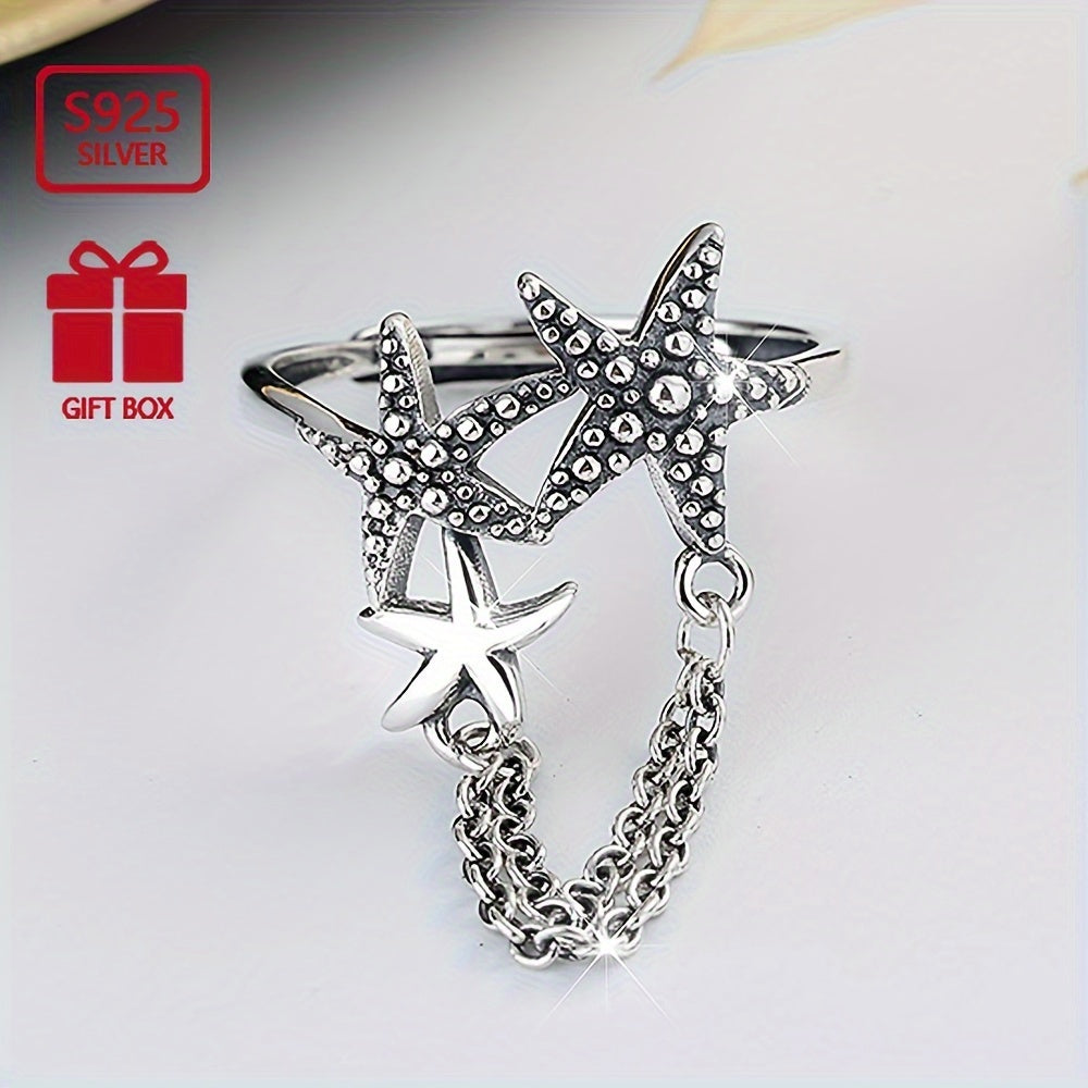 This S925 pure silvery starfish tassel ring is a perfect accessory for daily wear. The lightweight design adds a touch of elegance to any outfit.