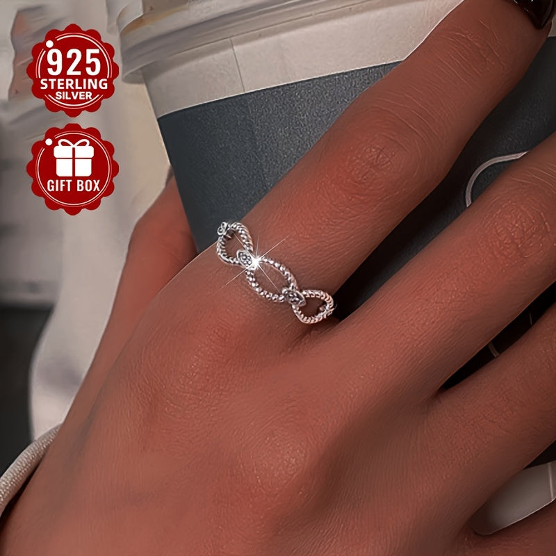 This S925 pure silvery ring features a basic retro geometric design, suitable for daily wear by both men and women. It is a perfect Christmas gift for friends, as it is low in allergy and weighs around 1.5g.