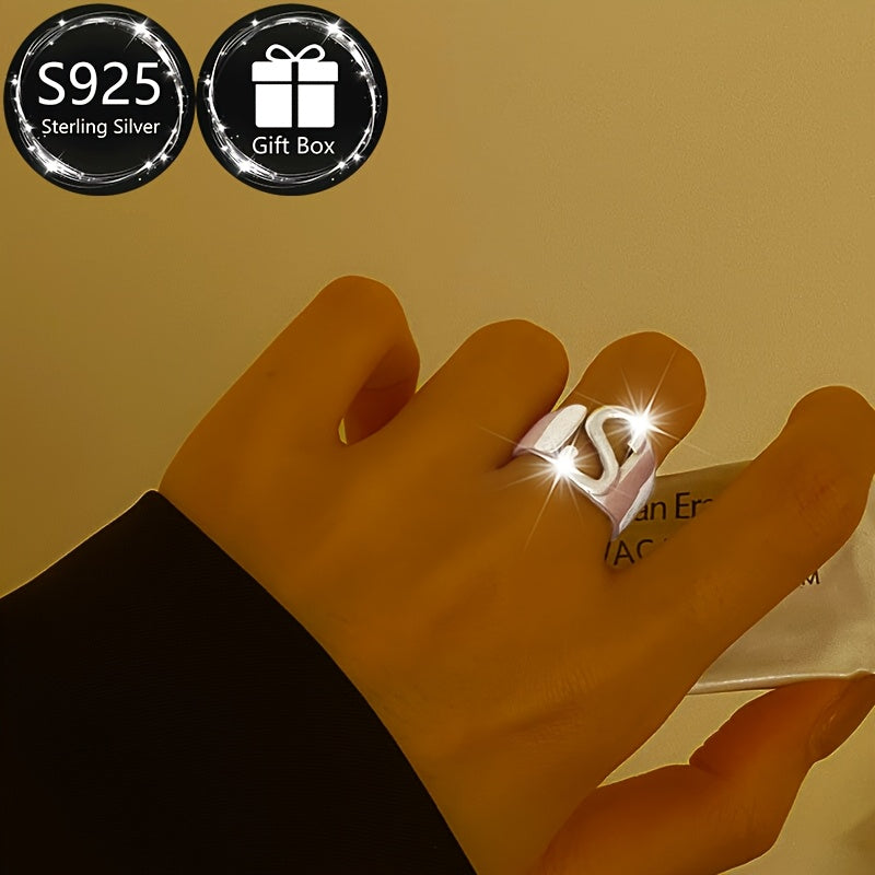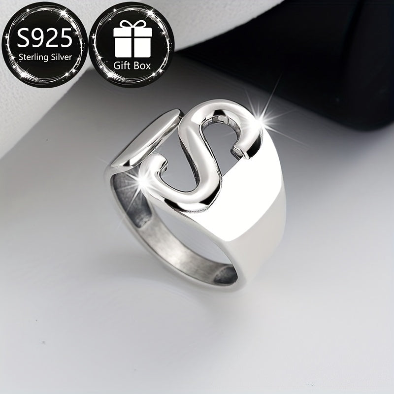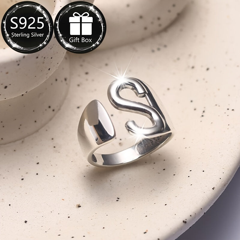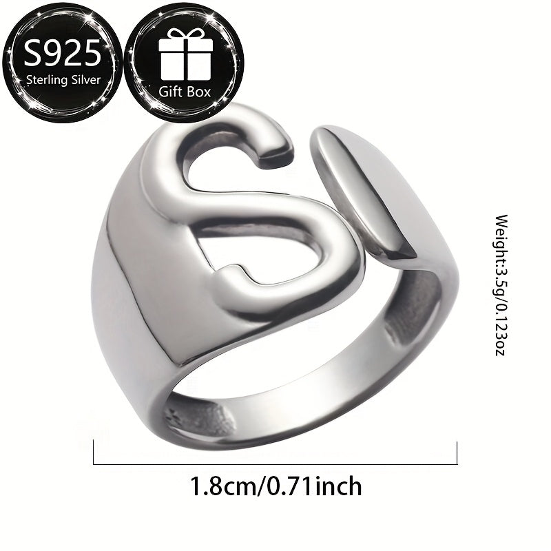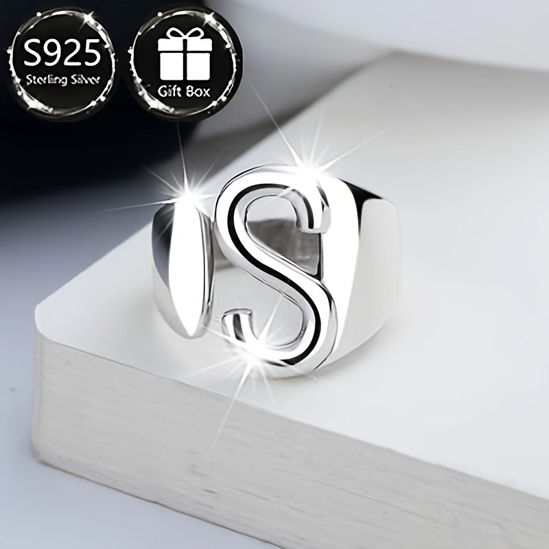 S925 Silvery Women's Ring with Capital Letter S, Daily Wear & Parties, Gift