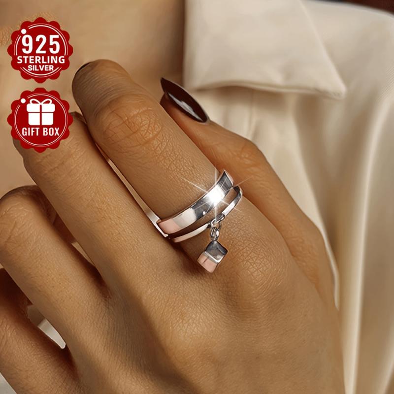 This double layer square ring is made of high-quality S925 sterling silver, ideal for both casual and party occasions.