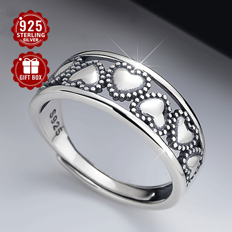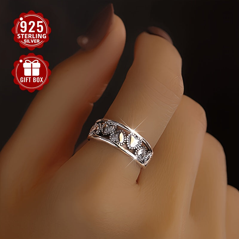 This exquisite ring features a hollow heart design, perfect for daily wear and travel. Made of high-quality S925 sterling silver, this ring is a great addition to your jewelry collection.