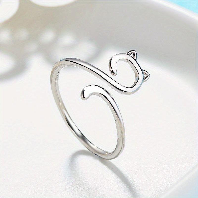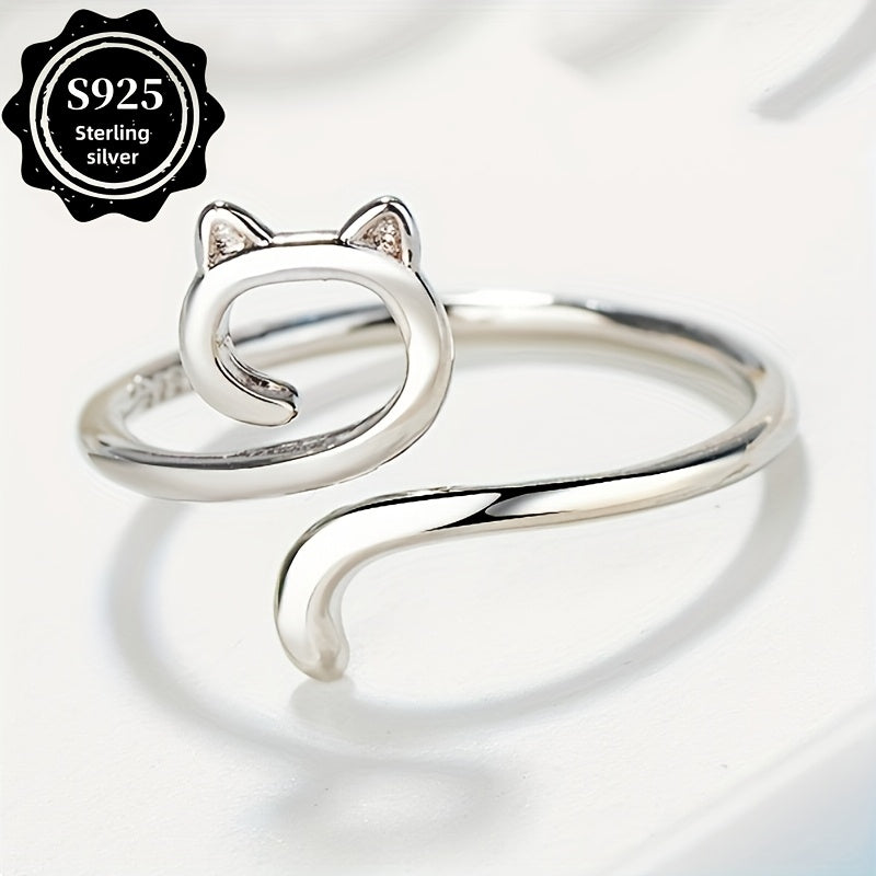 This adorable S925 sterling silver ring features a hollow cat design, perfect for cat lovers. The adjustable sizing makes it versatile for both men and women. Ideal for casual wear or special occasions.