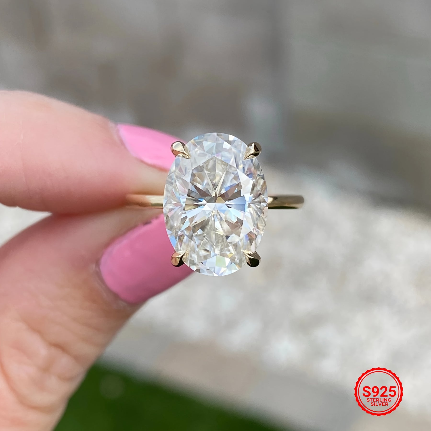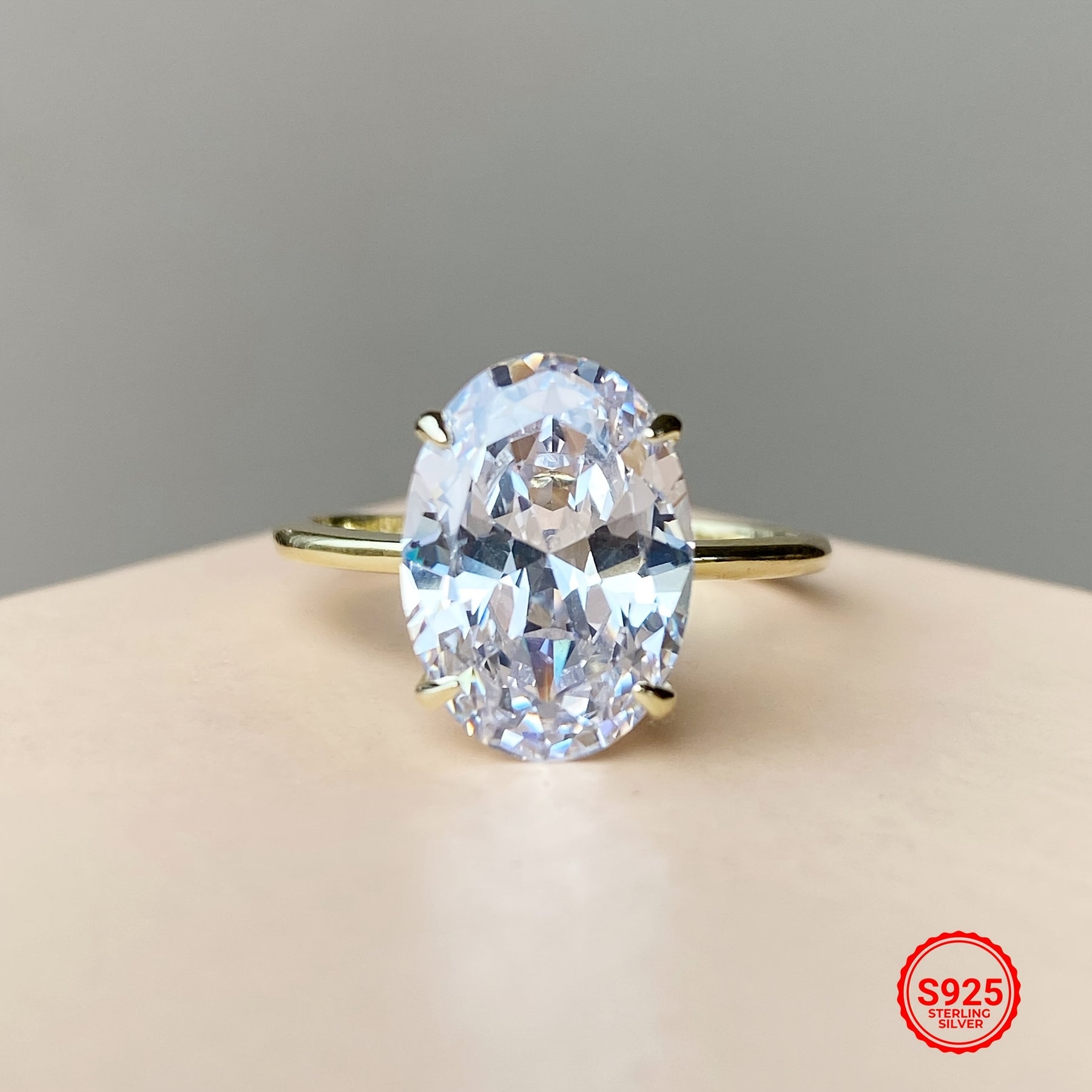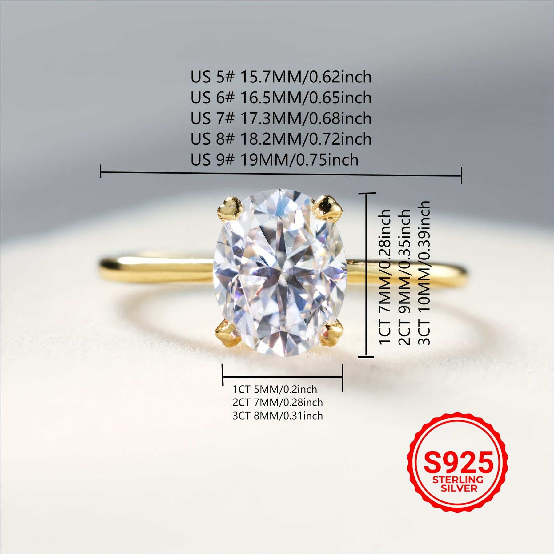 Elegant S925 sterling silver ring featuring an oval Simulated Diamond in 1CT, 2CT, or 3CT options. The prong setting adds a fashionable touch to this ring.