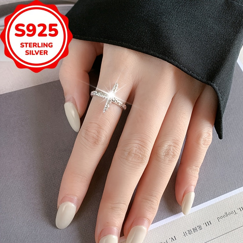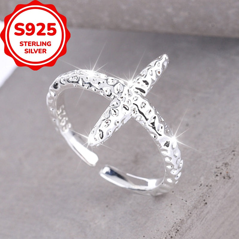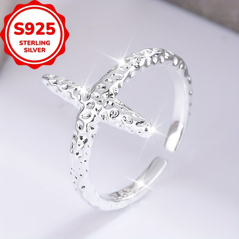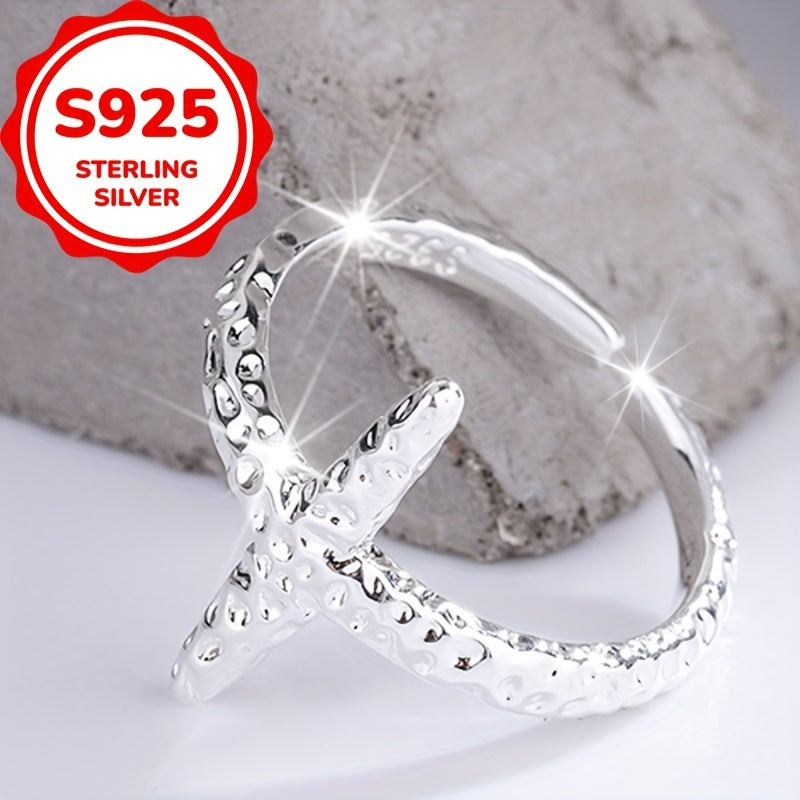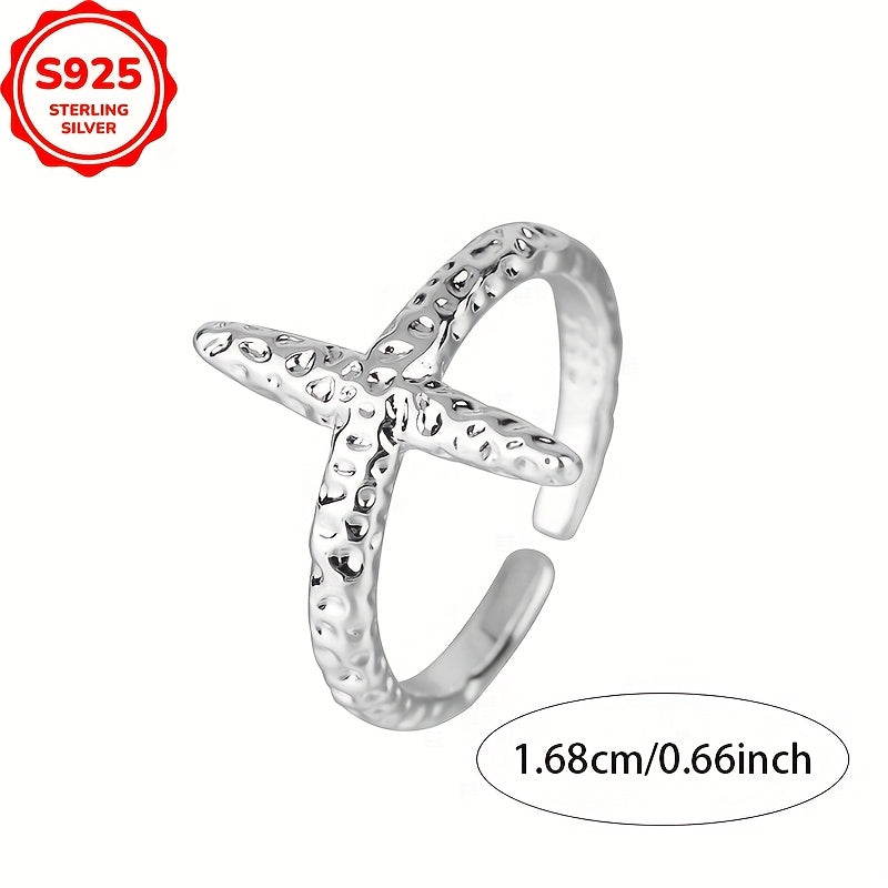 This stunning S925 sterling silver ring features a starfish design and open hoop with sparkling texture. Perfect for daily wear, travel, parties, and special occasions.