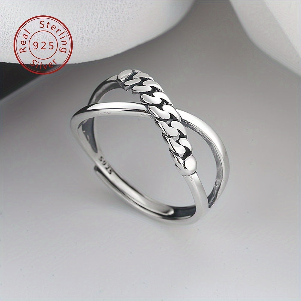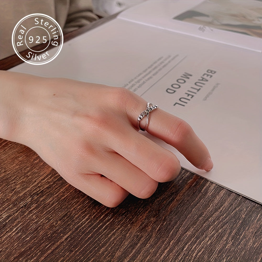 This s925 pure silvery twist ring features a unique cross design, perfect for women's index finger. It is suitable for outfit matching and party wear. Approximate weight: 2.2g.