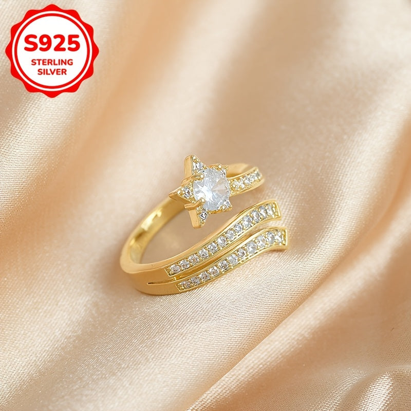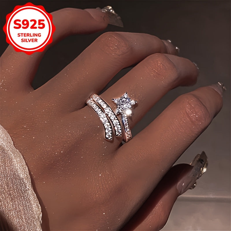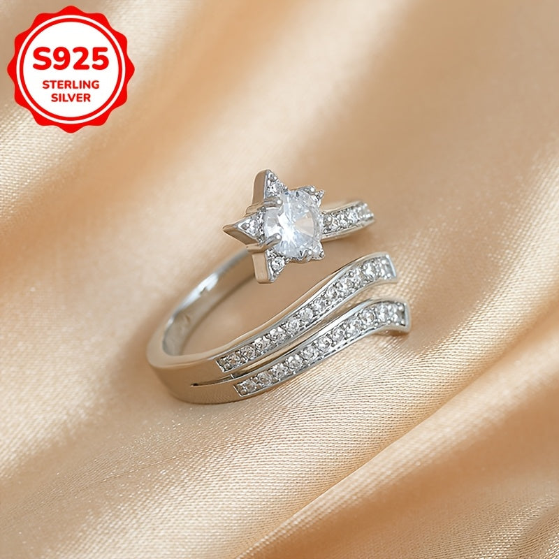 Seasonal Double Star Open Ring in Synthetic Zirconia 925Silvery