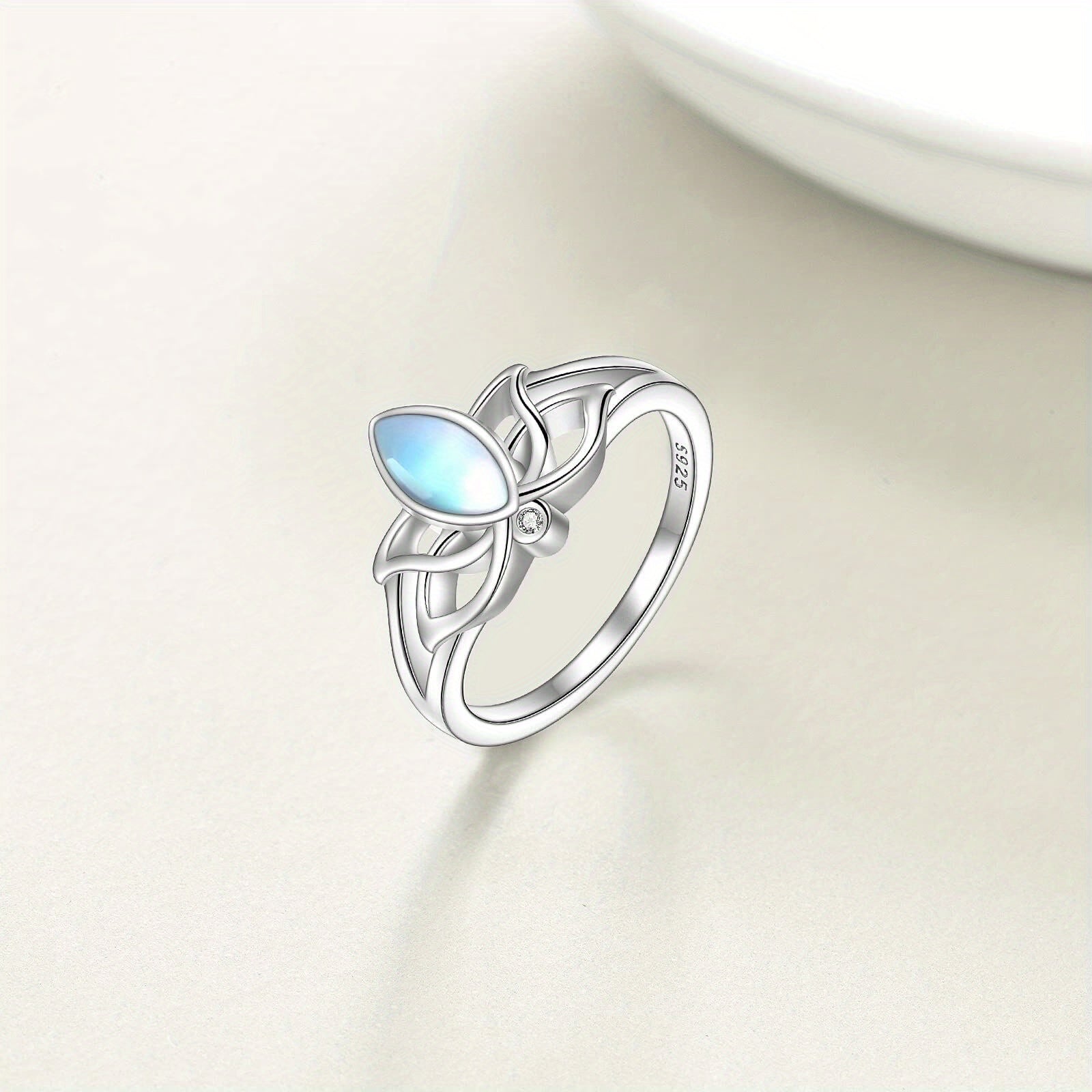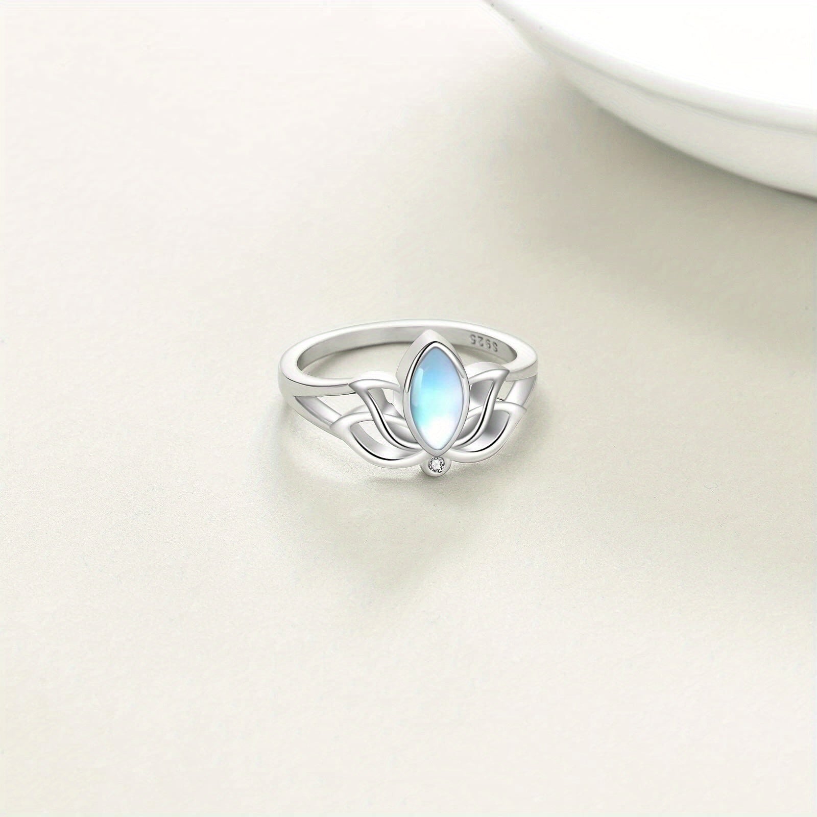 Elegant sterling silver ring featuring a beautiful moonstone set in a lotus flower design. Perfect for women's size 8.